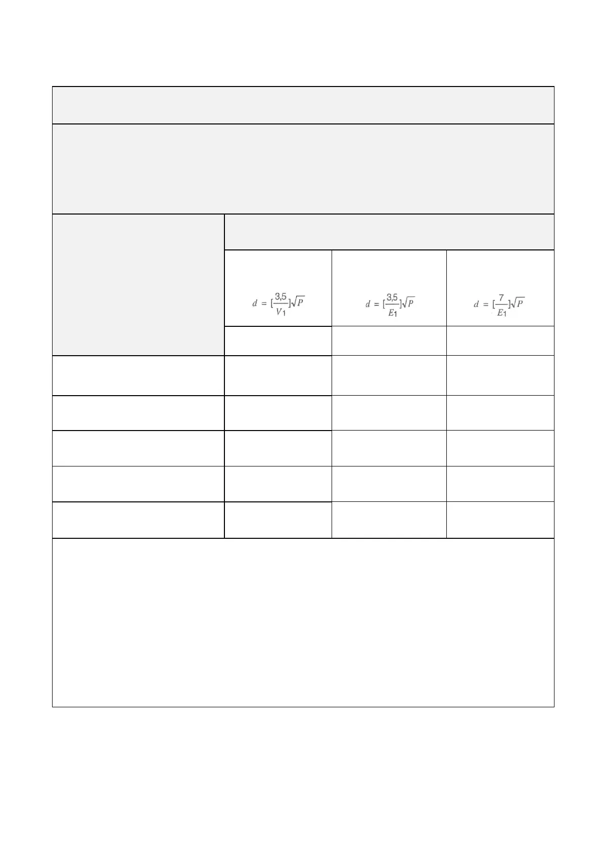 in meters (m) can be estimated using the equation applicable to the frequency of the transmitter, where