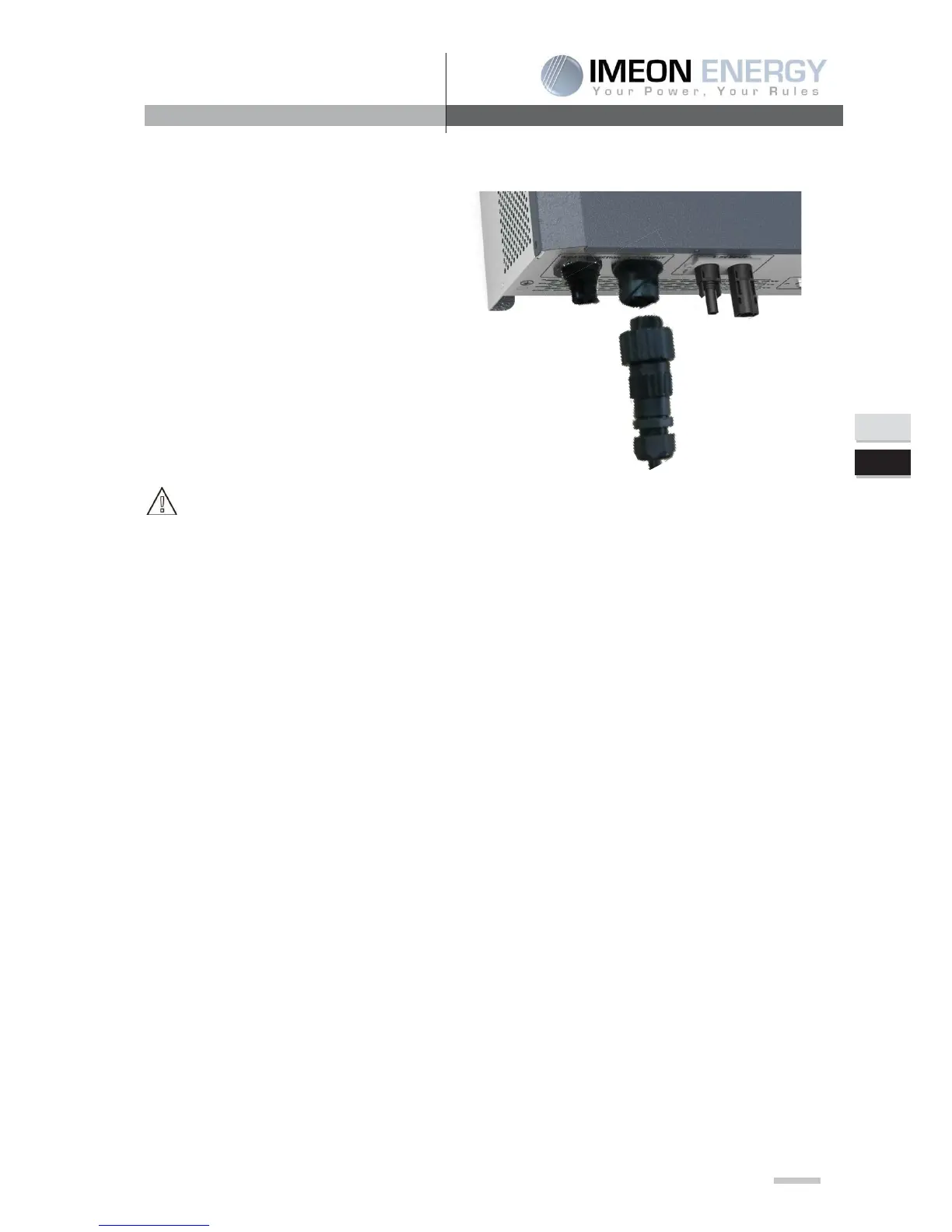 NOTE: AC Output cannot be connected in parrallel to another IMEON and cannoot be connected to