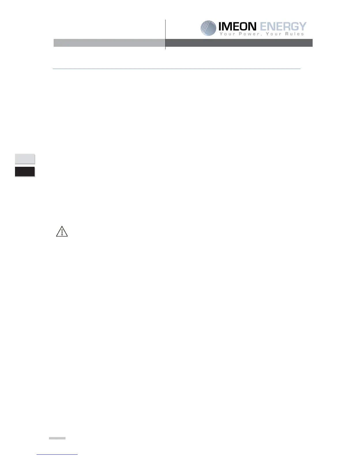 ¾ Verify the good sizing of the cabling between the inverter and the battery.