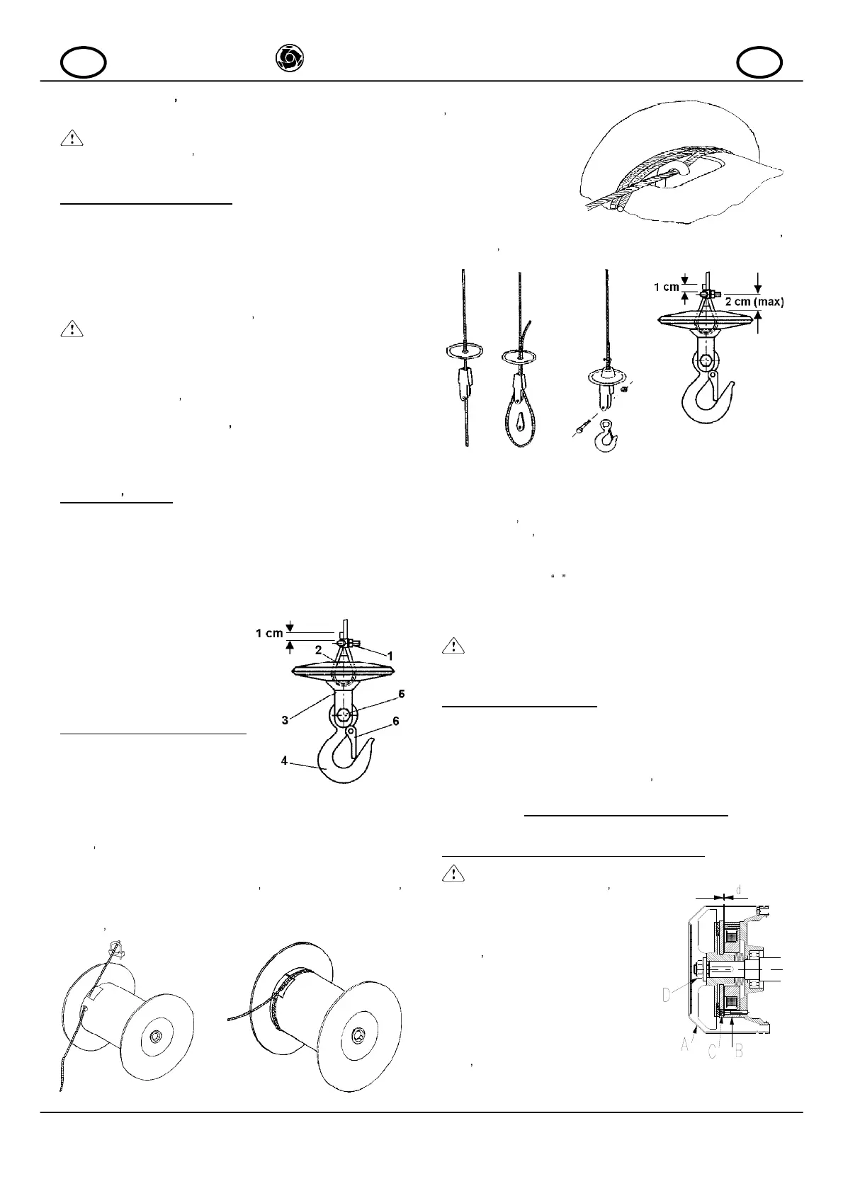 Ripassare la fune d acciaio nel bozzello a cuneo e nel contrappeso.