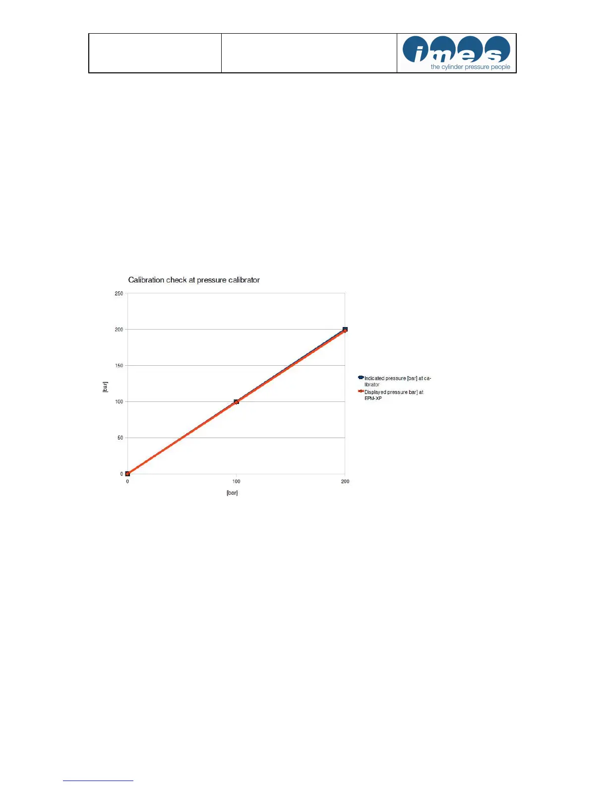 Indicated pressure [bar] at calibrator Displayed pressure [bar] at EPM-XP