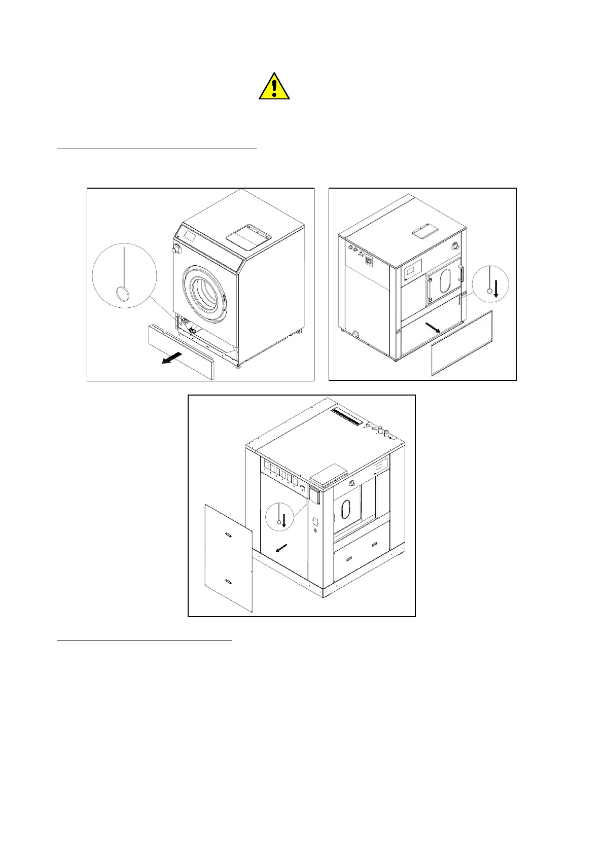 In the case of machines with impulse closure. To pressure only the panel identified in the figure. To unhook the