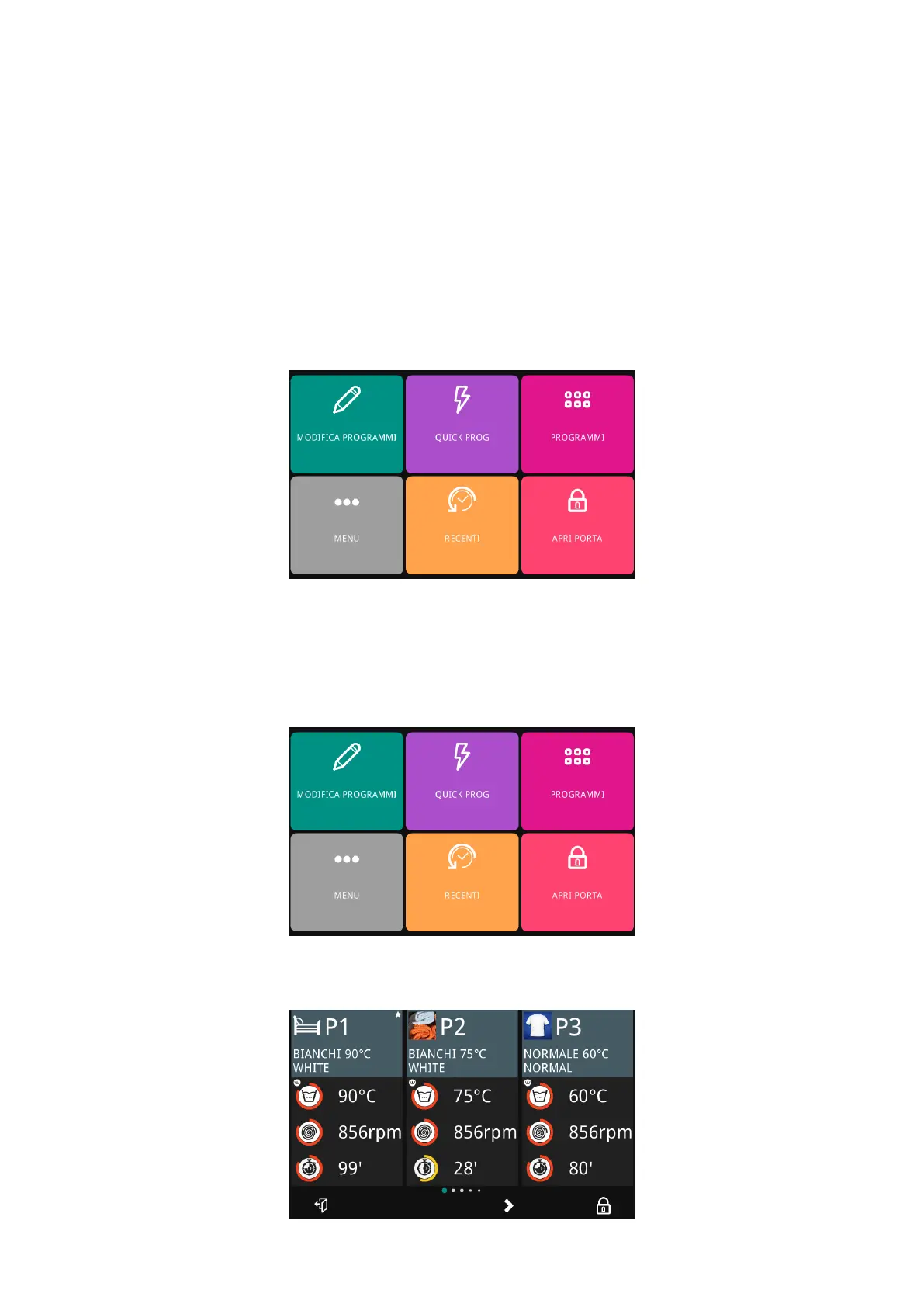 After loading the machine and closing the porthole, the main MENU screen appears on display.