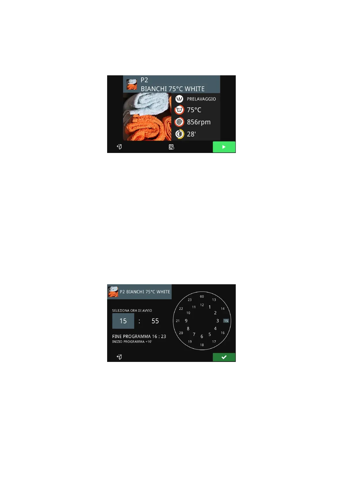 Tapping the icon "►” the selections confirmed, and the display displays the start screen of the selected program