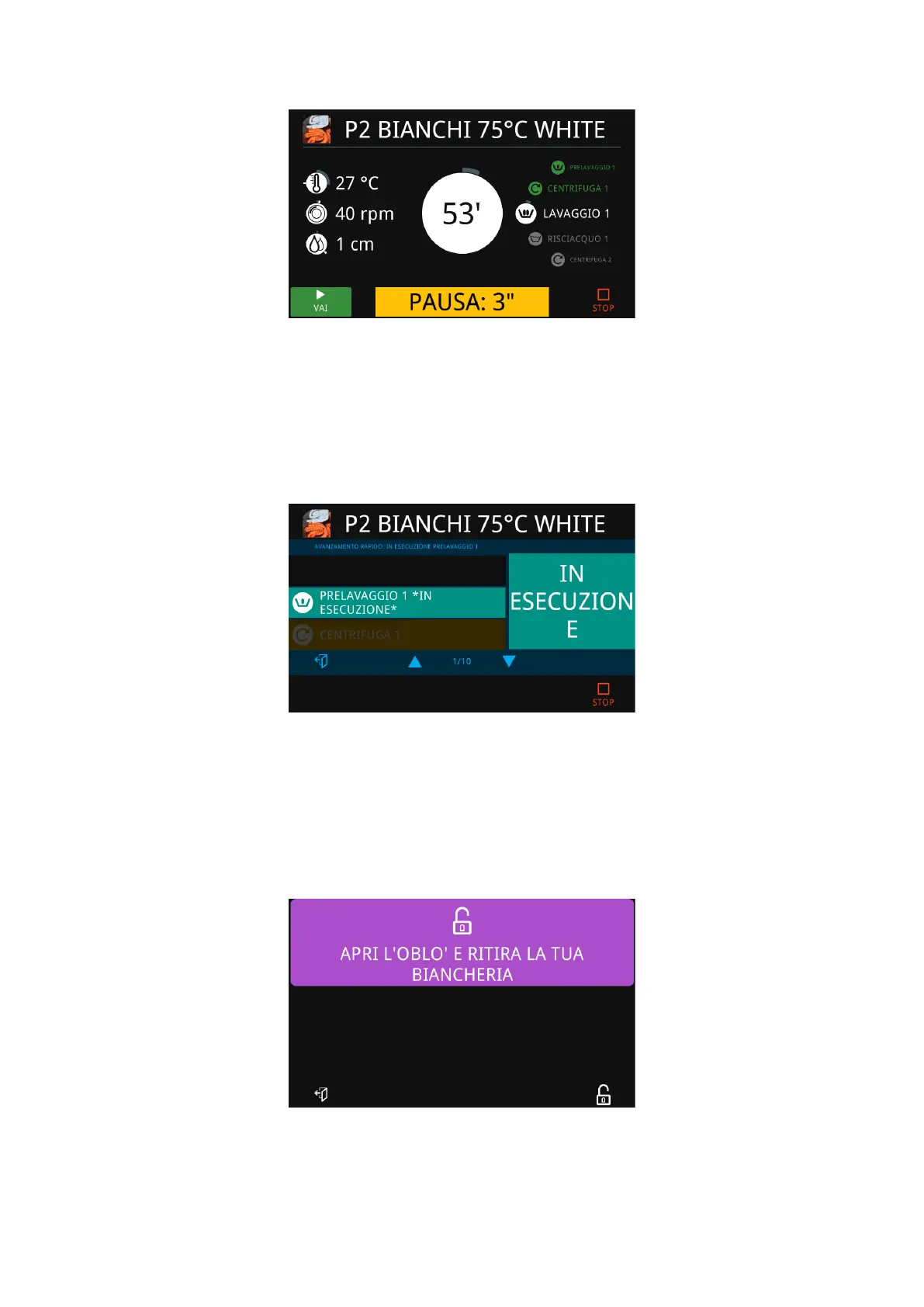 During soaking, the cycle can still be interrupted by pressing the STOP icon.