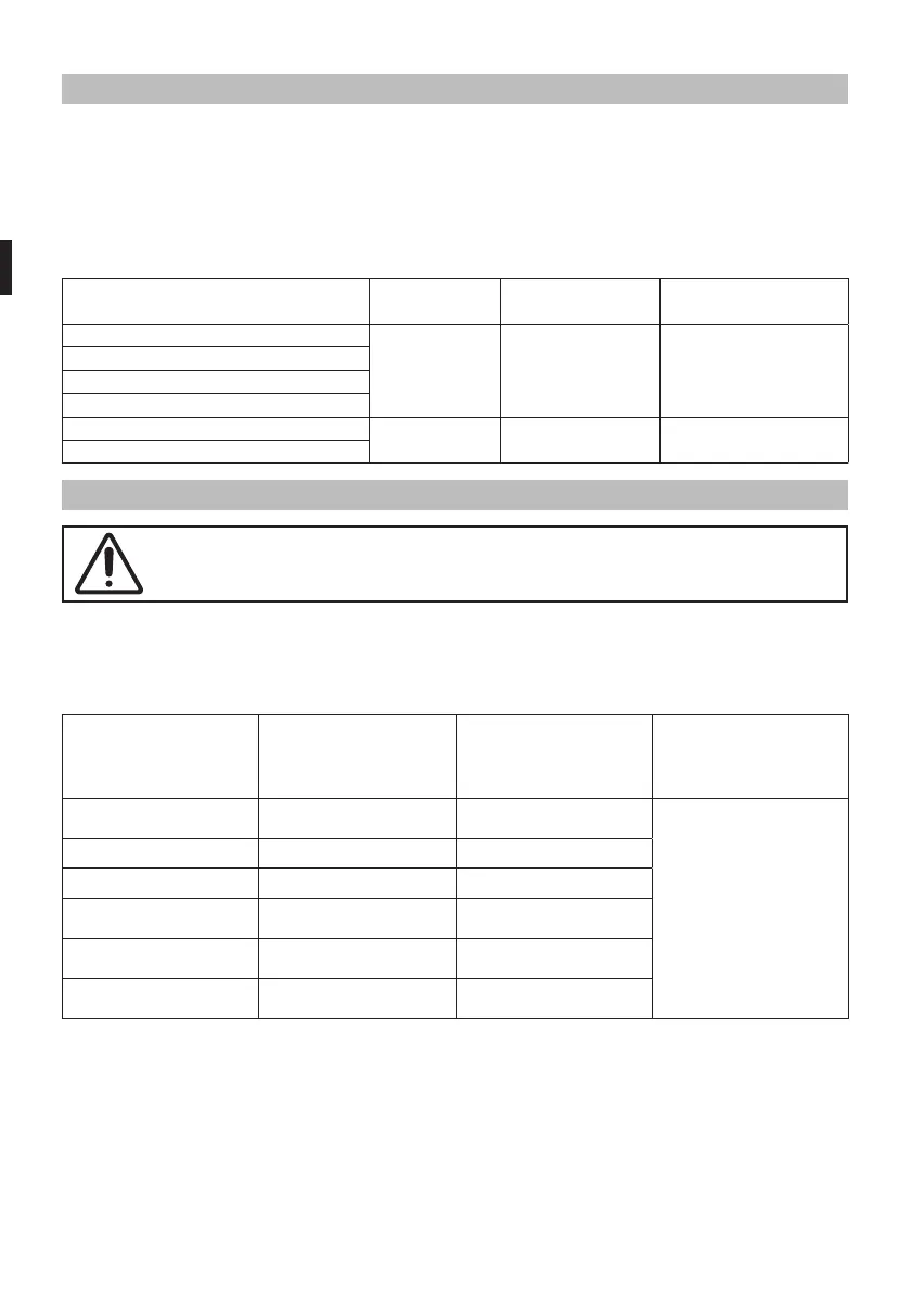 Für einen sicheren Gebrauch des Geräts sind die Angaben in dieser Tabelle zu beachten: