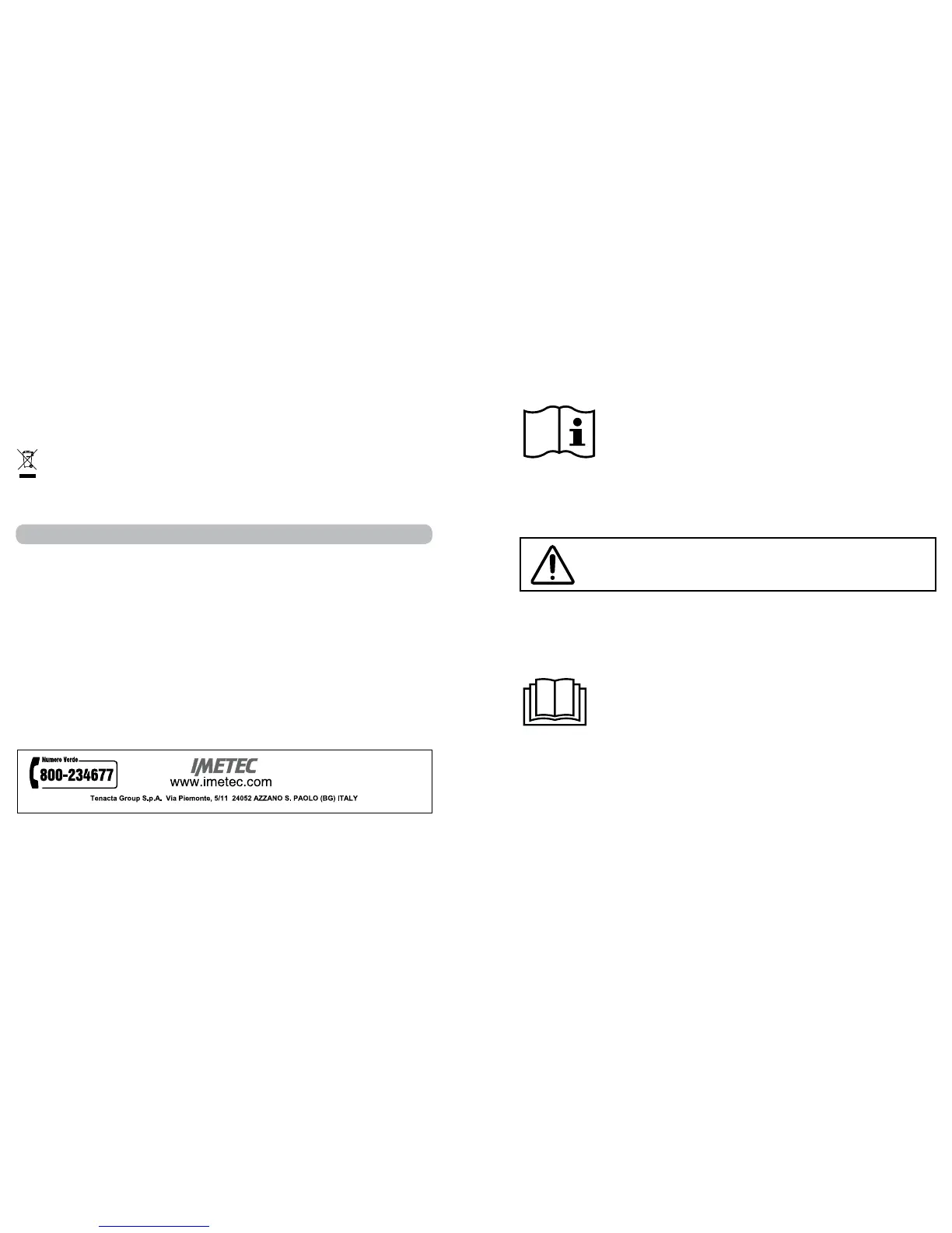 di assistenza ai clienti IMETEC contattando il Numero Verde sotto riportato