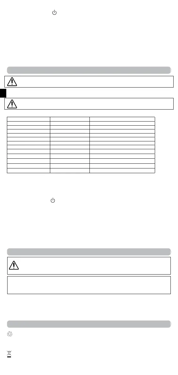 • Включите прибор, нажав на кнопку (4). Всегда выключайте прибор, когда им не пользуетесь.
