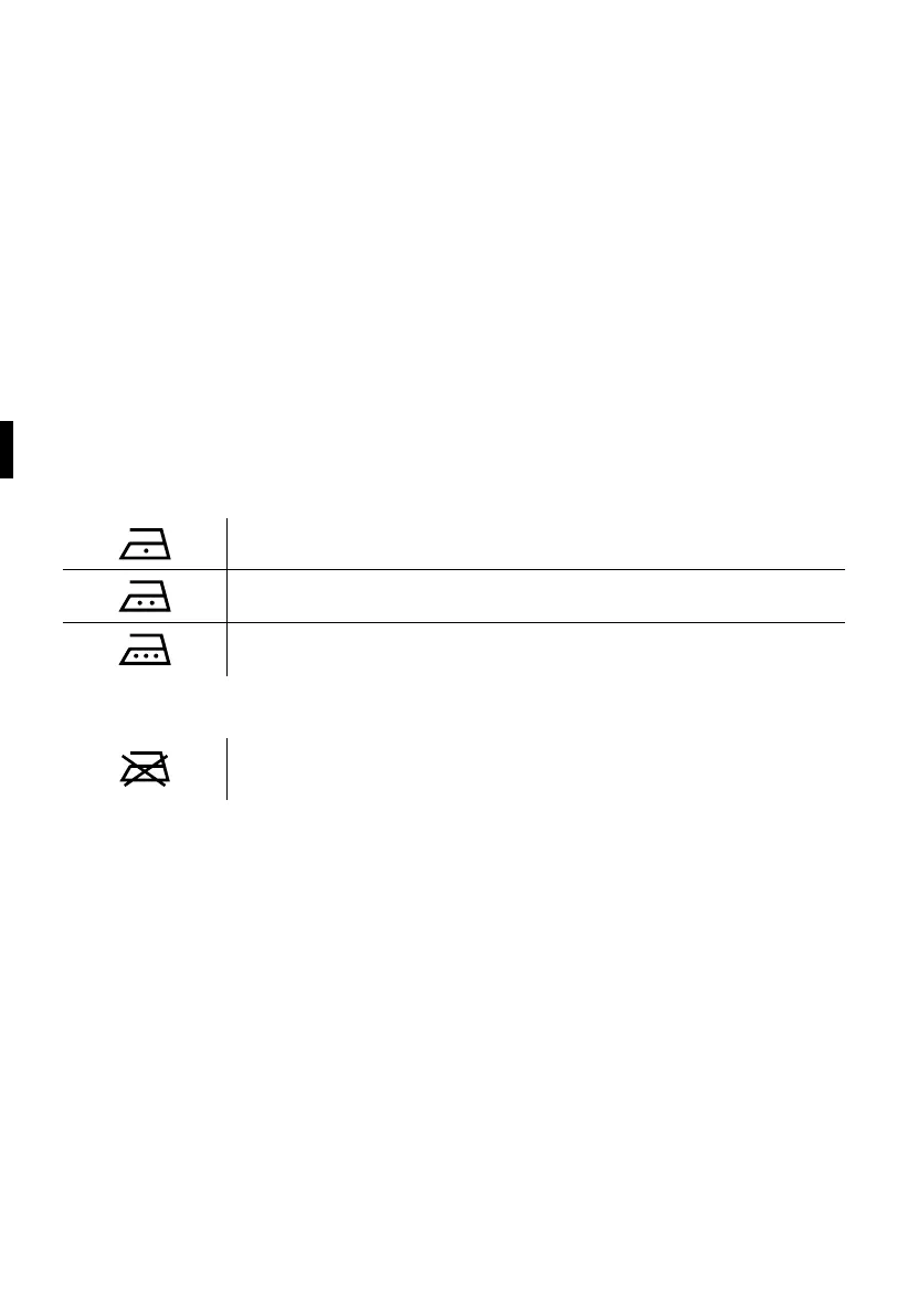 Ni mogoče likati tkanin z naslednjimi simboli: