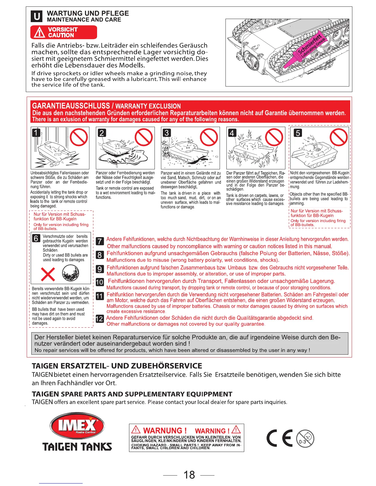 imex M26 Pershing - Maintenance and Care; Warranty Exclusion