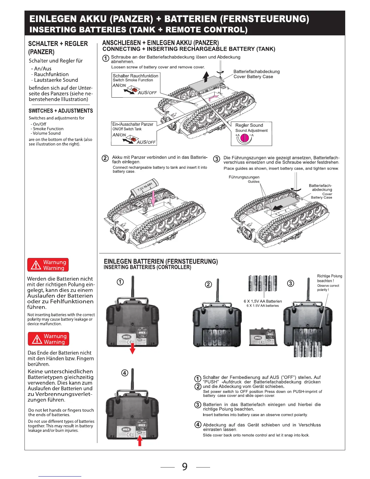 imex M26 Pershing - Inserting Batteries (Tank and Remote Control); Inserting Batteries (Controller)
