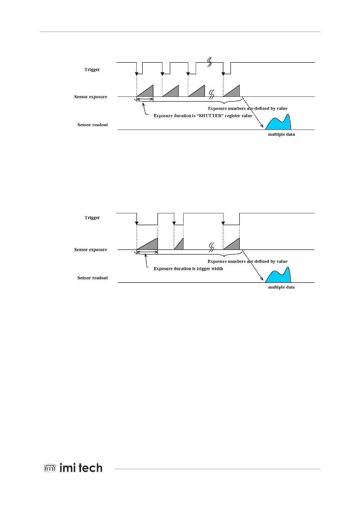 first external trigger input falling edge and exposes incoming light until the trigger is inactive. It repeats this
