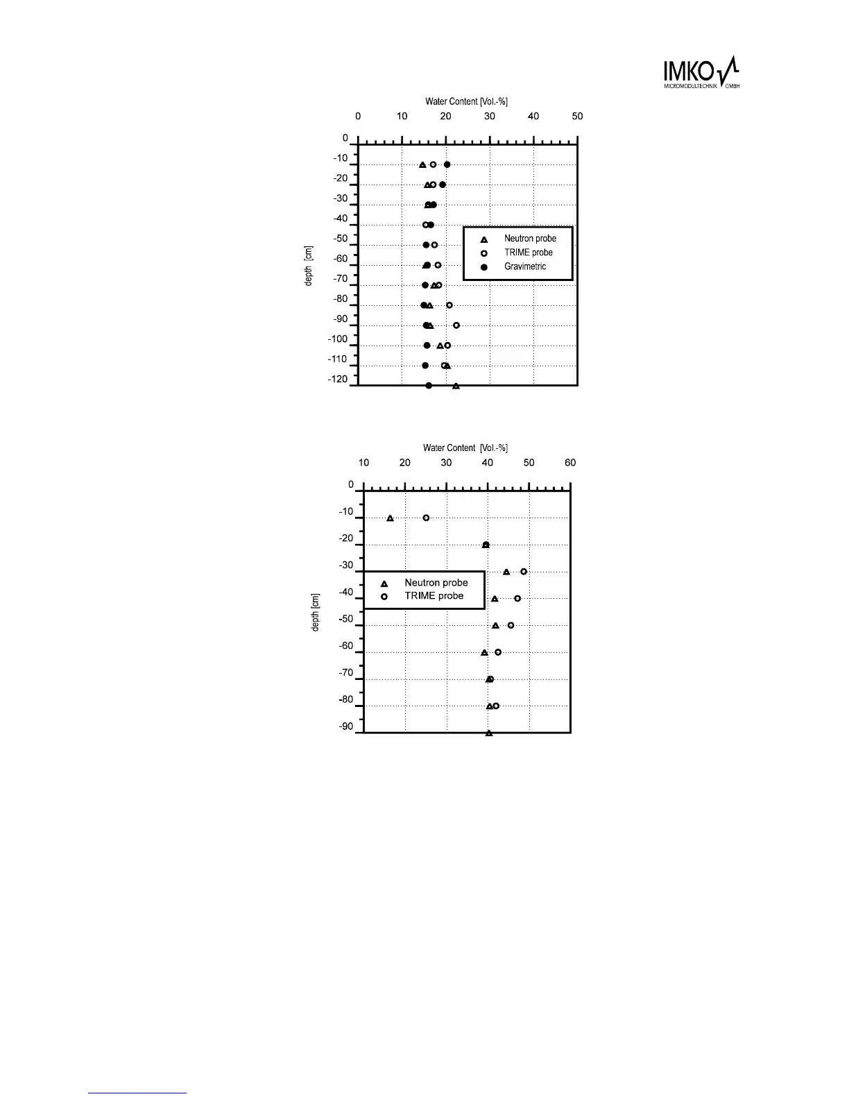 Figure 4: Comparison of neutron probe, TRIME-T3 and gravimetric method for water content
