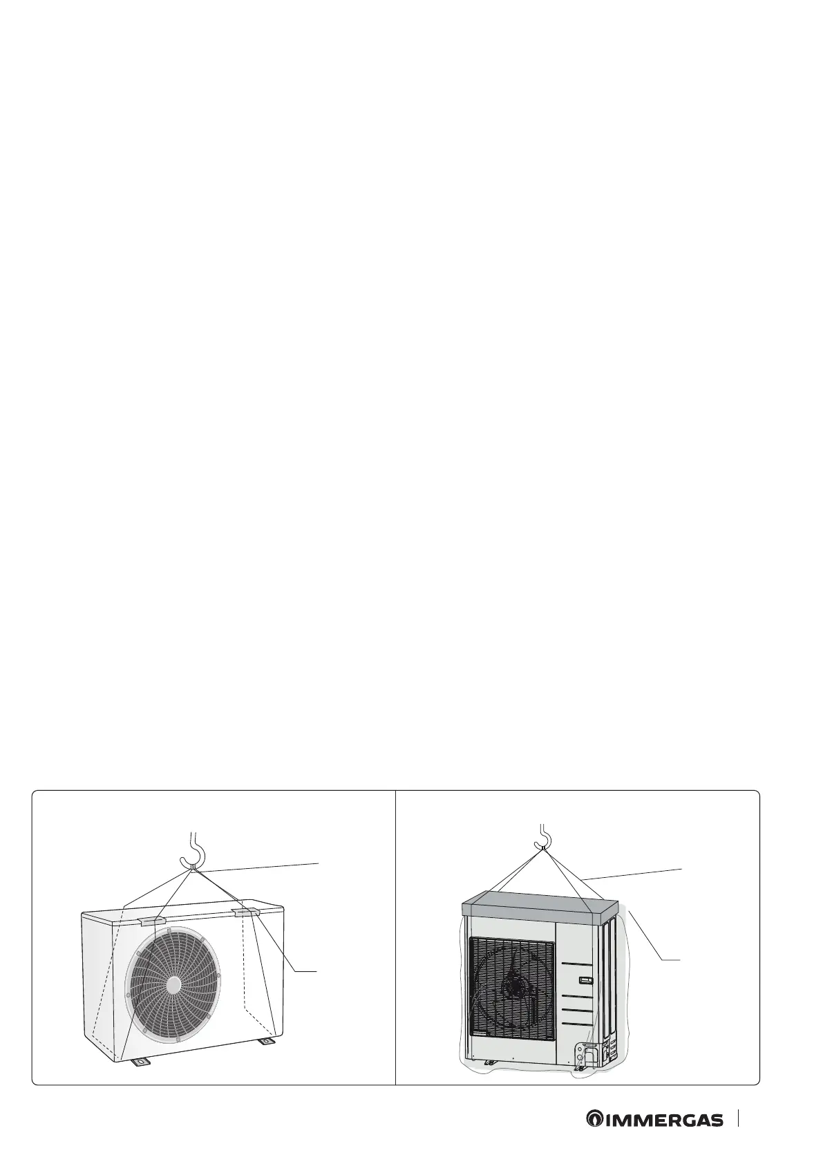 Fasten the outdoor unit with two wire ropes, 8 m or larger as