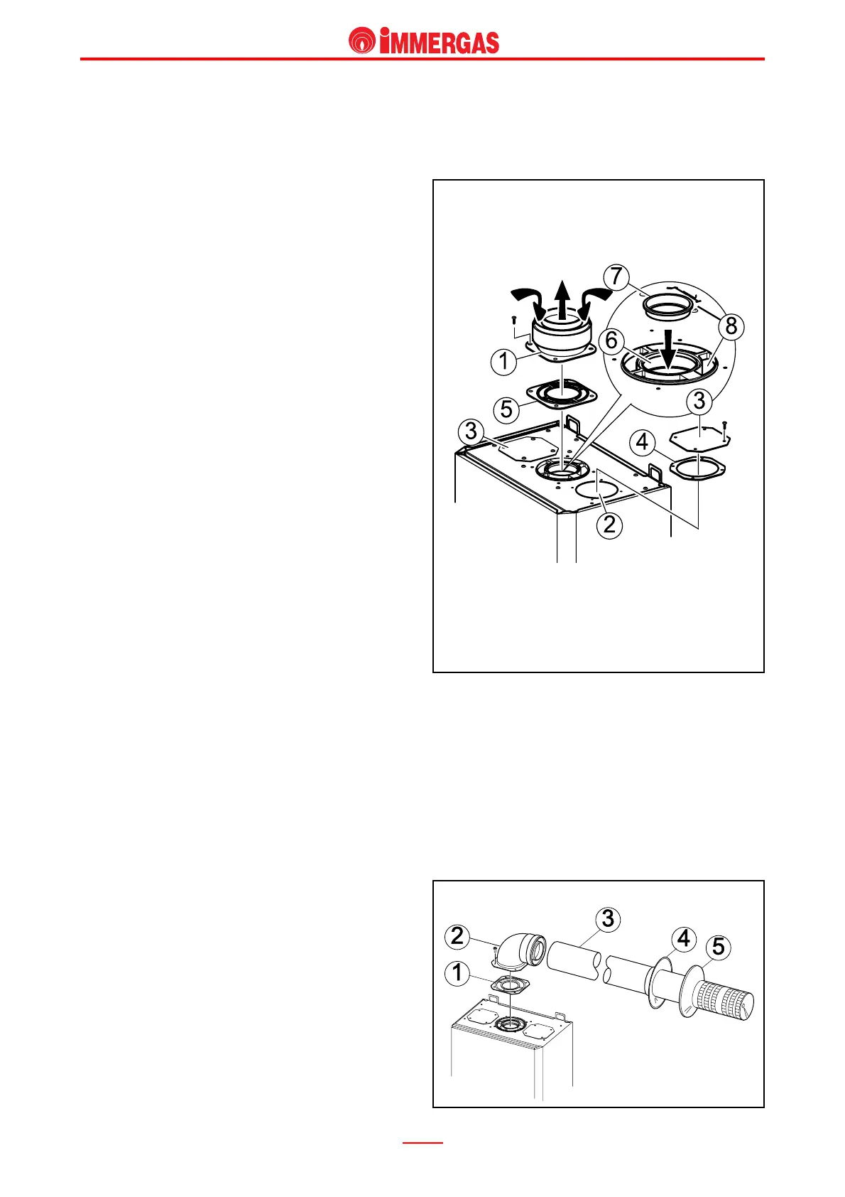 The exhaust pipe (Ø 60 mm) is fitted inside the