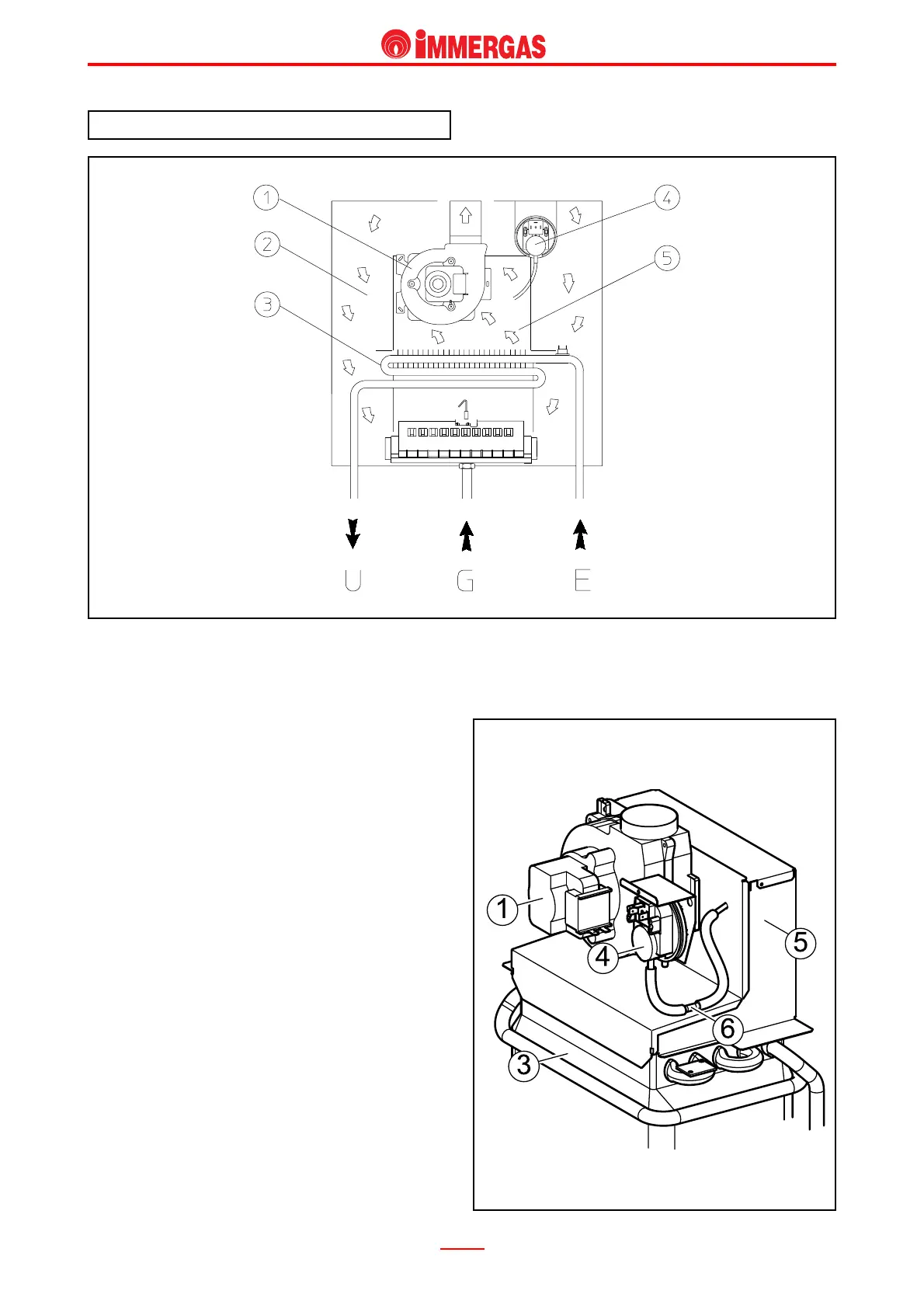 gas exchanger (3), are conveyed to a draught diverter