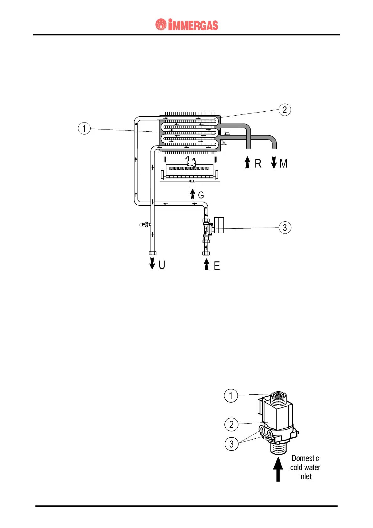 cold water circuit inside the "cross-shaped" hot-water circuit pipes (2).