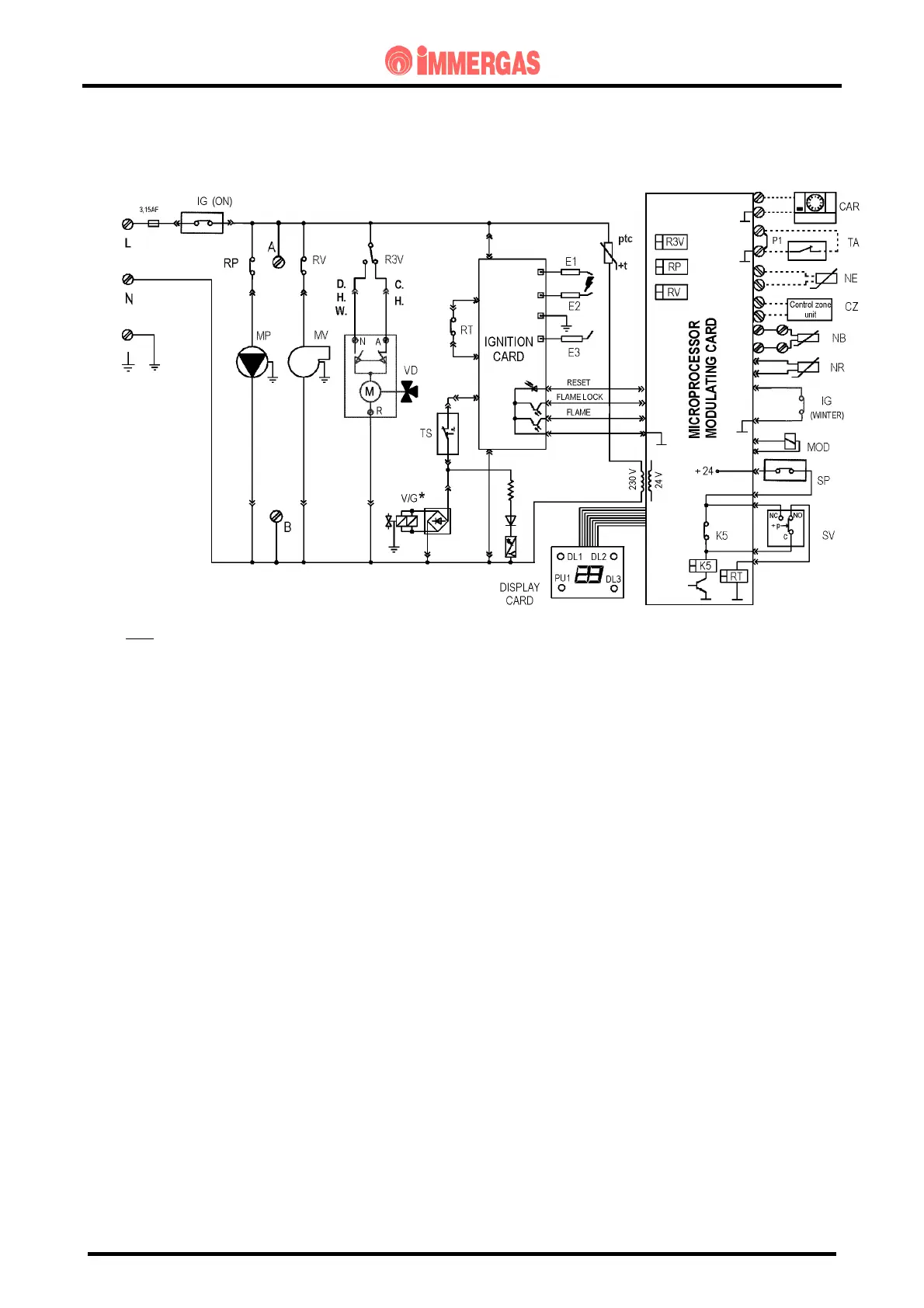 (*) only on the Honeywell VK 4105 gas valve, the main coils are powered at mains voltage by means of a