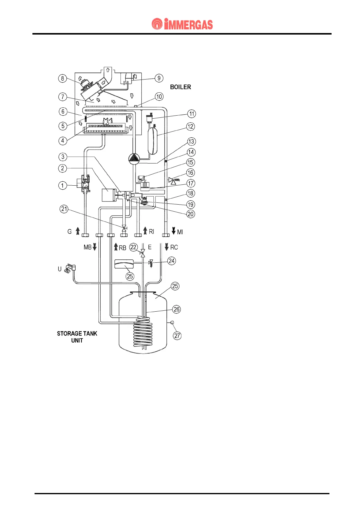 be deviated inside the storage tank coil (28) if combined with a PLUS unit.