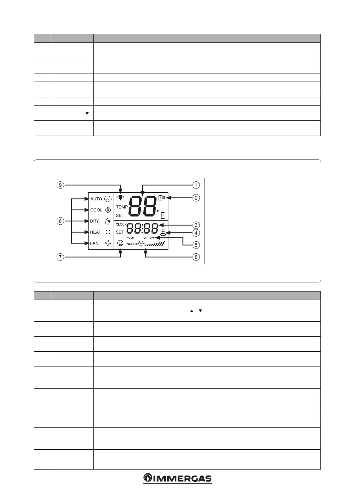 Diminuisce la temperatura impostata. Mantenendo premuto il pulsante la temperatura scenderà di 1°