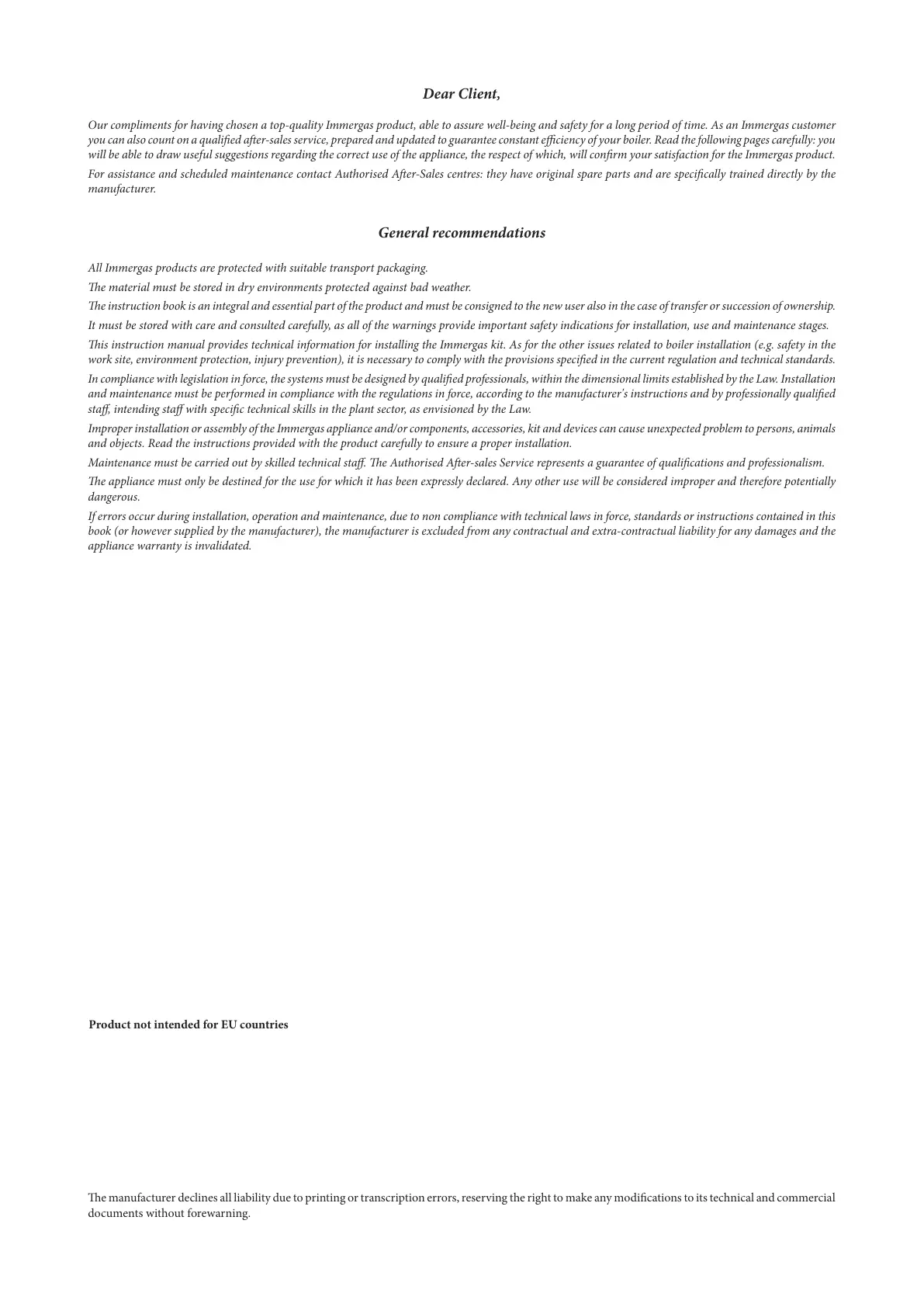 is instruction manual provides technical information for installing the Immergas kit. As for the other issues related to boiler installation (e.g. safety in the