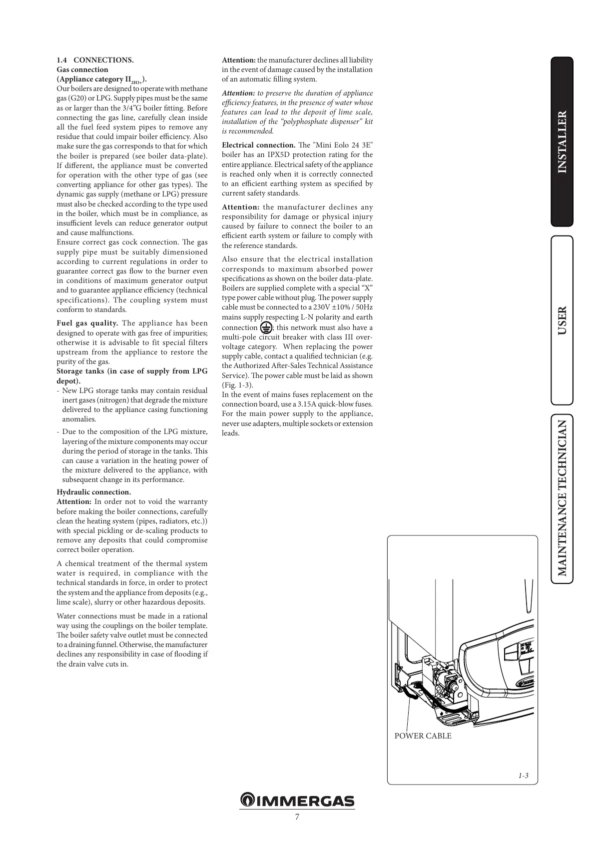 gas (G20) or LPG. Supply pipes must be the same