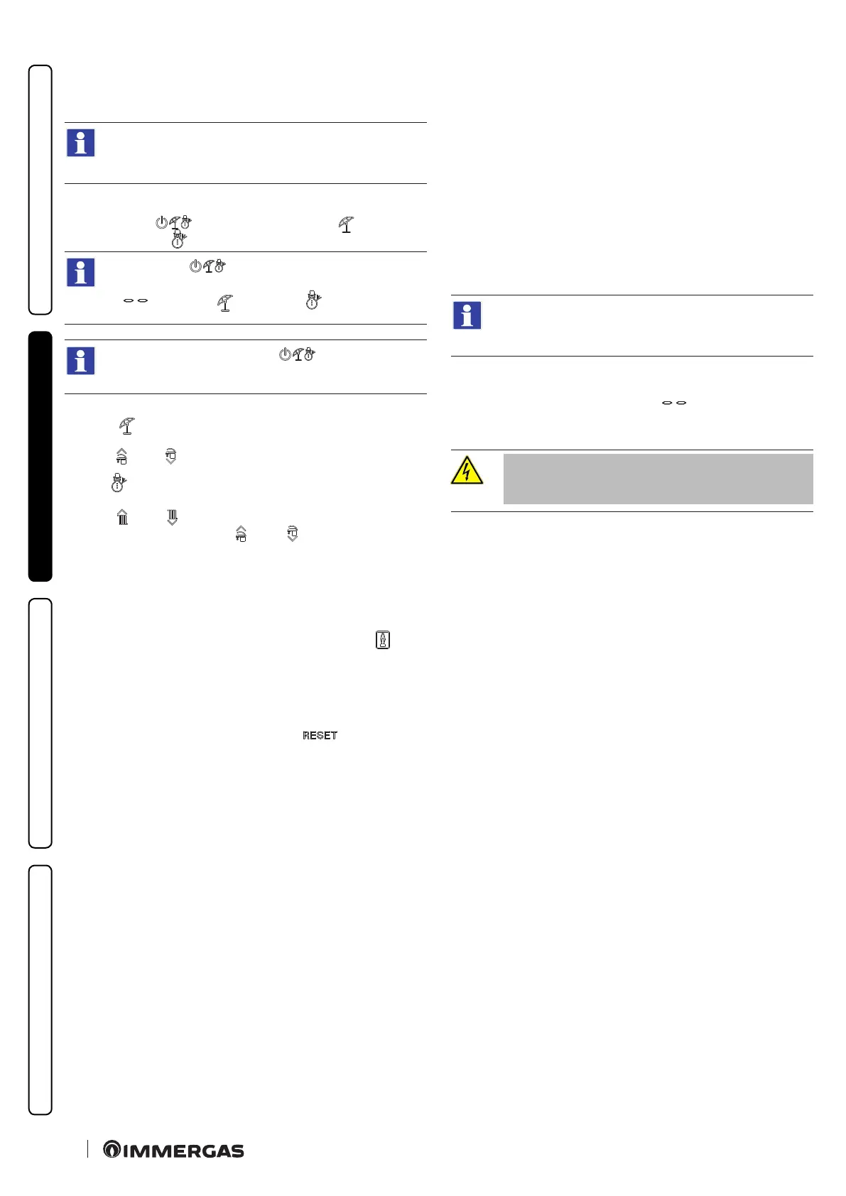 active on the boiler control panel, the "+" and "-" buttons for DHW