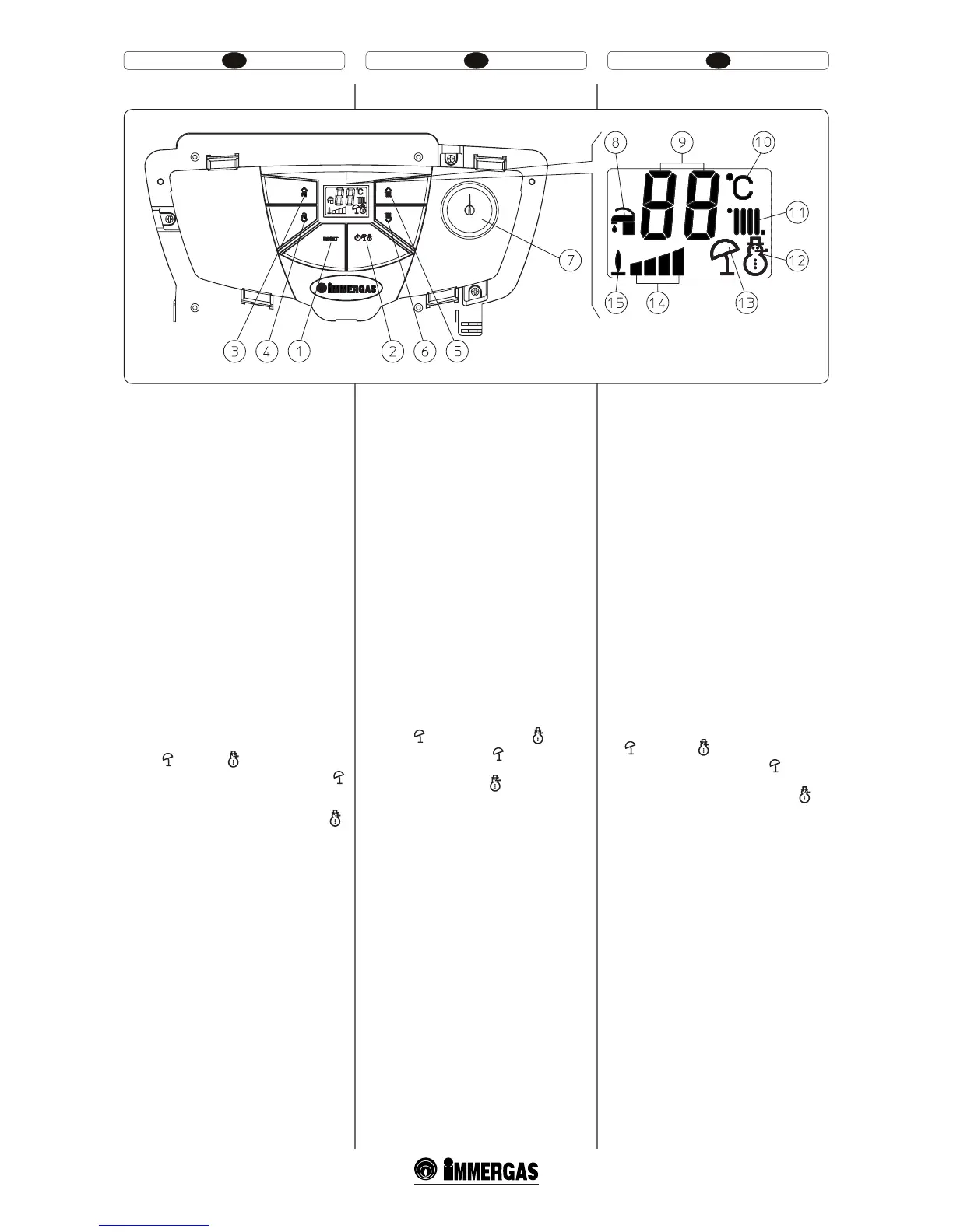 3 - Key (+) to increase the domestic hot water
