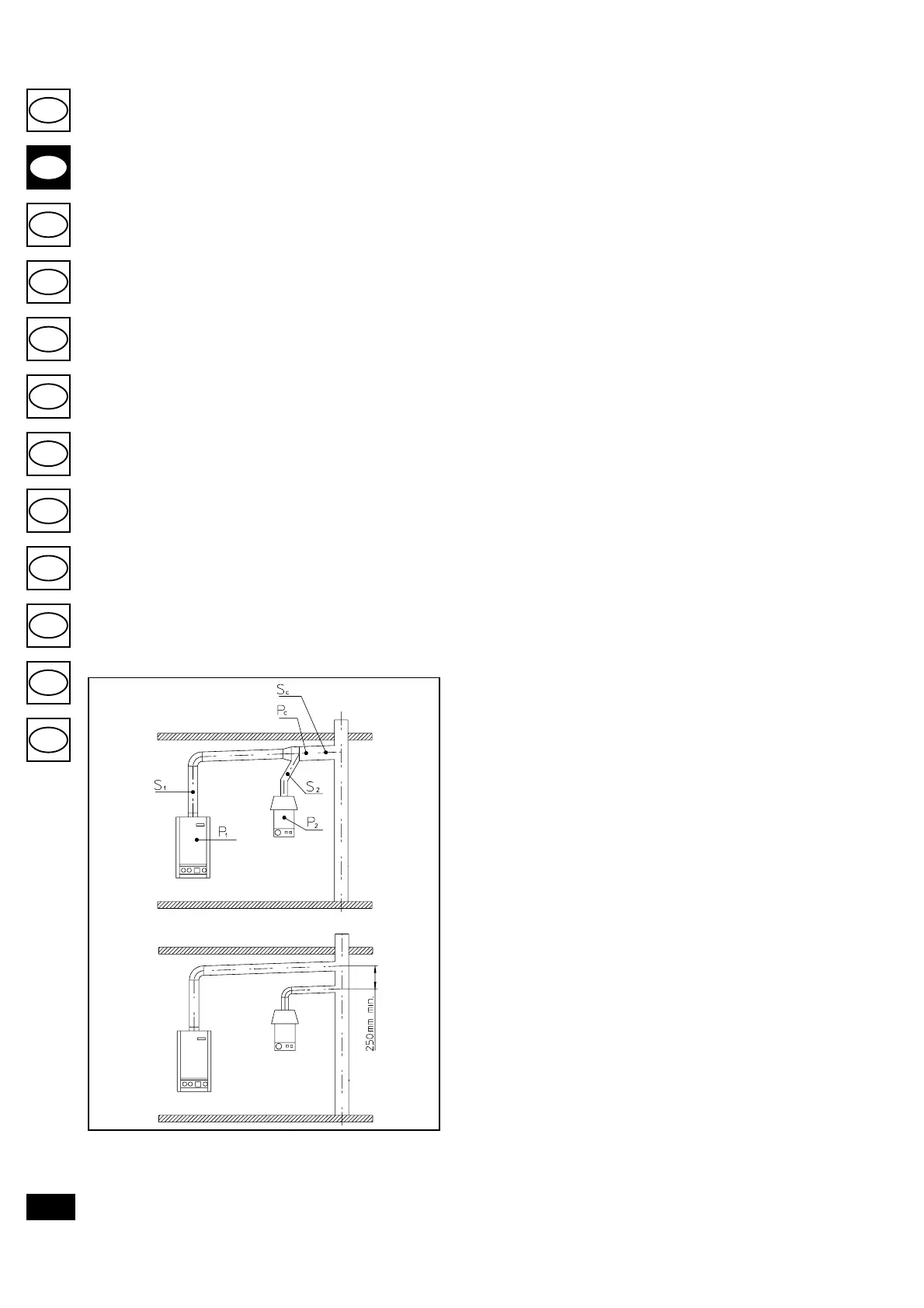 conduto de evacuação; neste caso, a distância vertical mínima entre os