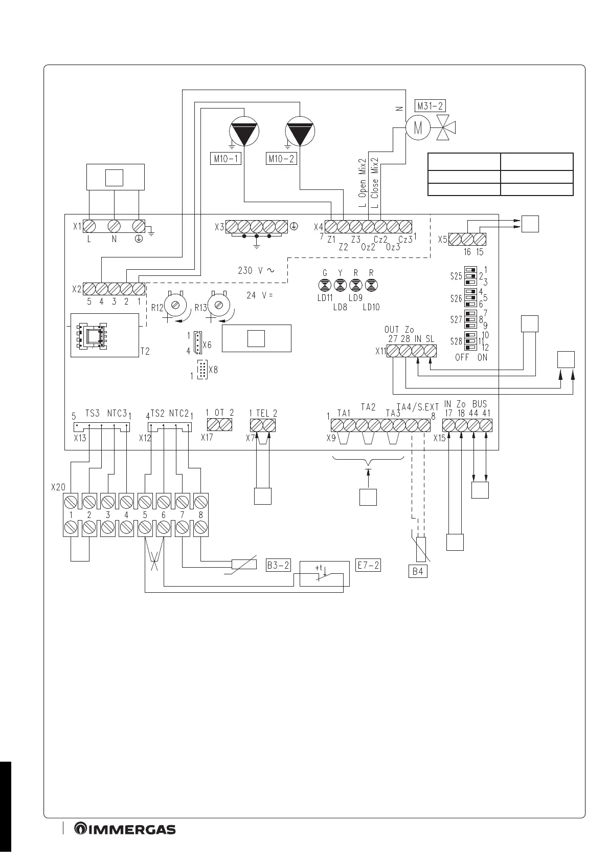 2.3 SCHEMA ELETTRICO PER UTILIZZO KIT SU IMPIANTO DIVISO IN 1 ZONA DIRETTA E 1 ZONA MISCELATA