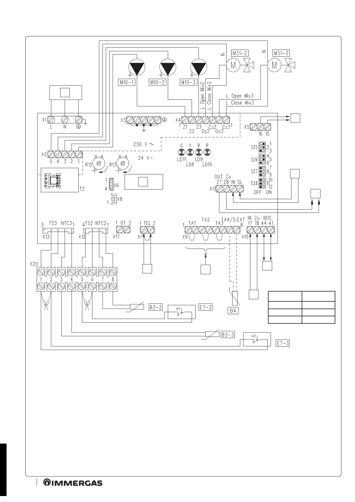 2.4 WIRING DIAGRAM FOR USING THE KIT ON A SYSTEM SPLIT INTO 1 DIRECT ZONE AND 2 MIXED ZONES