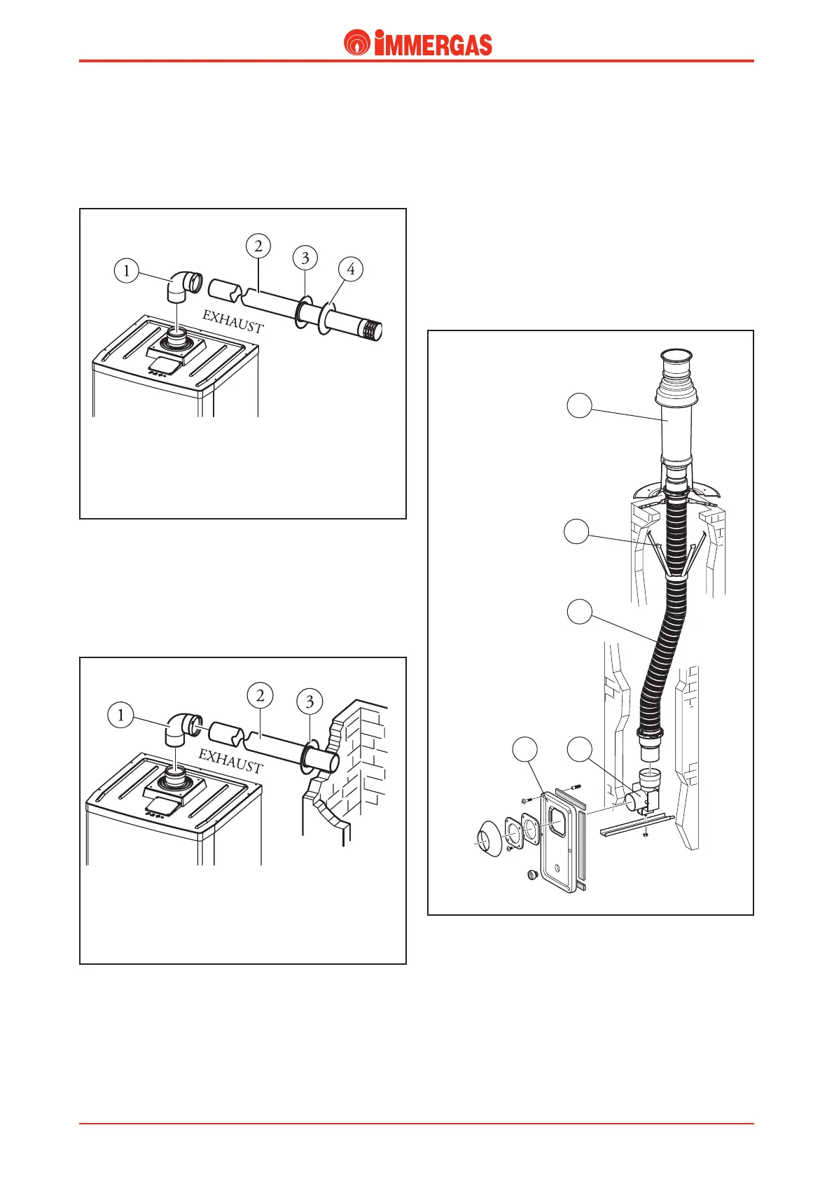 It is connected to the boiler’s exhaust pipe with an 87° curve