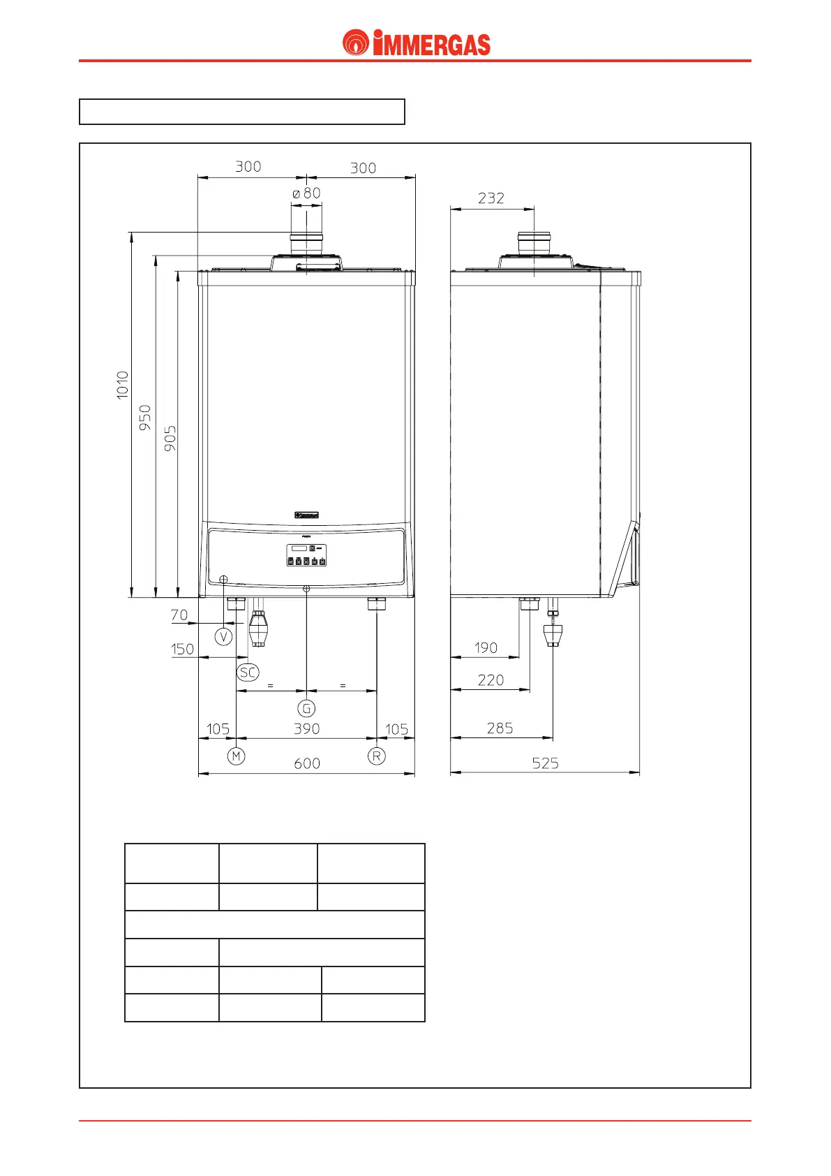 Immergas VICTRIX 75 - VICTRIX 75 Main Dimensions; Overall Dimensions and Connections