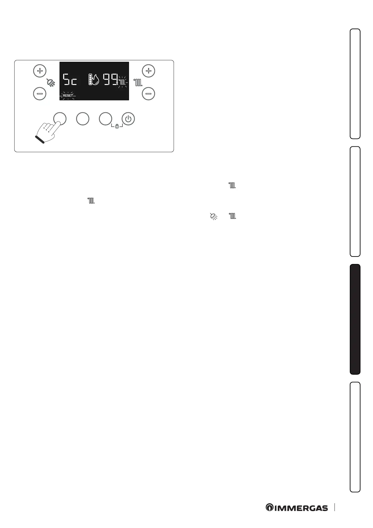 Functioning in CH or DHW mode is visualised by the relative ashing symbols "