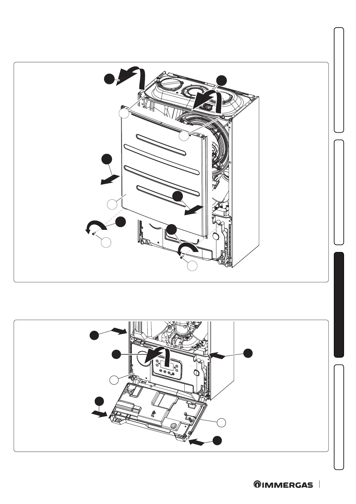 - Unscrew the two screws (g) at the bottom of the sealed chamber cover (f).