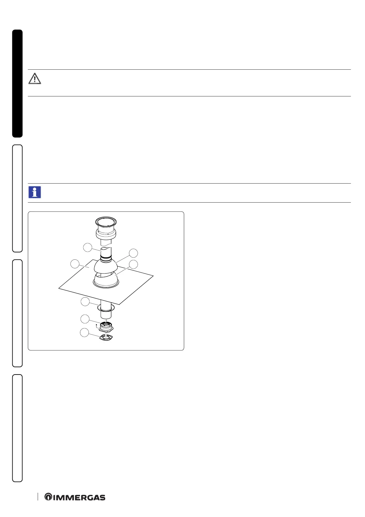 6. Fit the Ø 60/100 concentric terminal pipe with the male side (5) (smooth) into the ange (2) up to the end stop, making sure that the