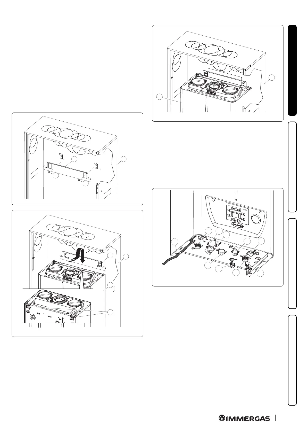 - Wall-mount the boiler (4) by inserting the hooks of the bracket