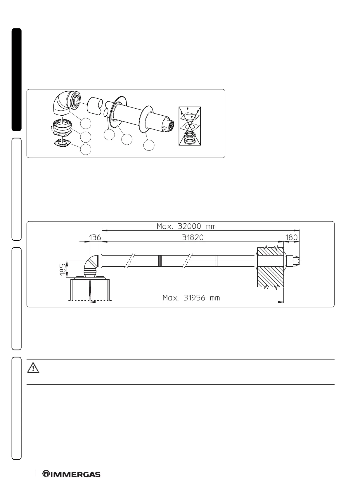 the height between the terminal cap and half-shell (374 mm for Ø 60/100 and 260 mm for Ø 80/125) must always be observed.