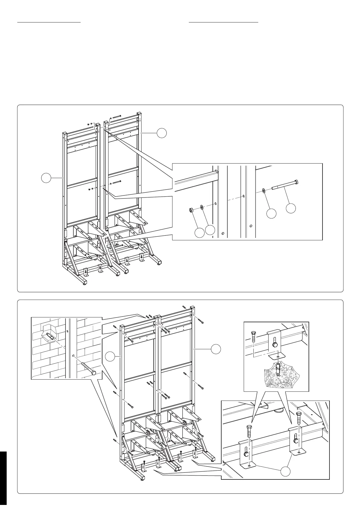 l) Fissare i telai (1) a parete e le squadrette (15) a terra come