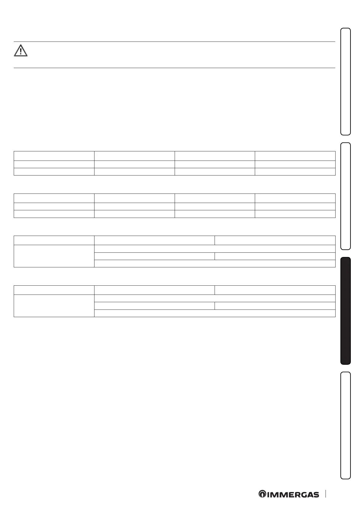 - When replacing the P.C.B. or adapting to another type of gas, set the heating output (parameter "P2") as shown in the table in the para-