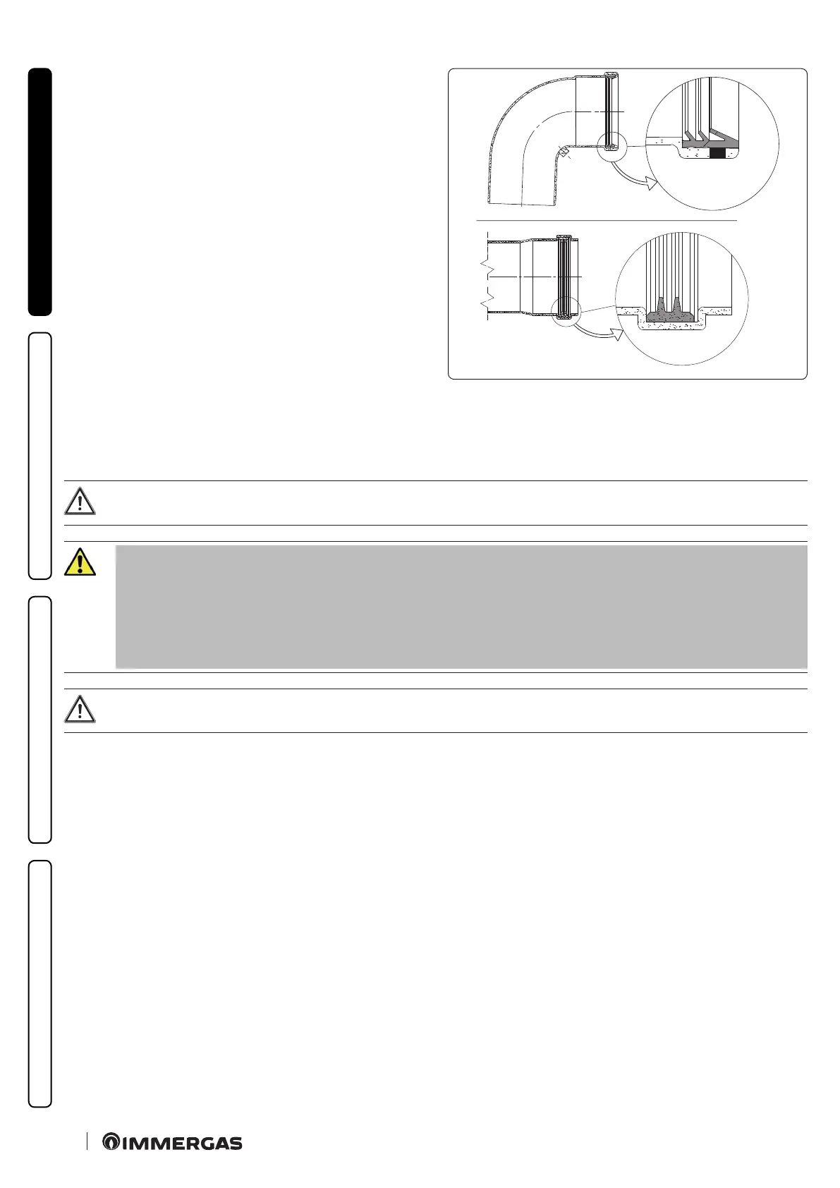 When installing horizontal pipes, a minimum inclination of 5% towards the appliance must be maintained, and a section