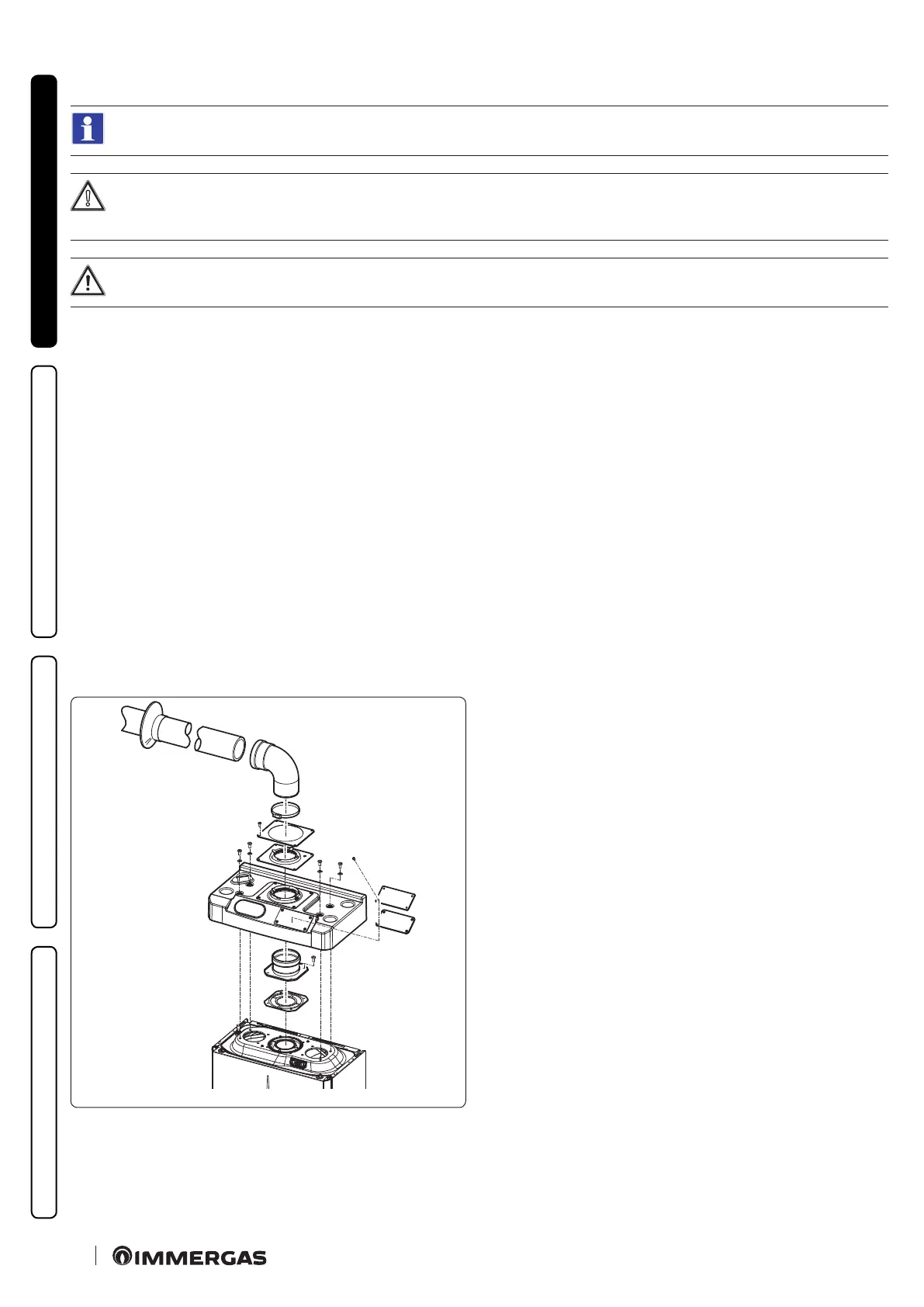 Install the Ø 80 outlet ange on the central hole of the boiler, taking care to insert the gasket supplied with the kit and tighten by means of