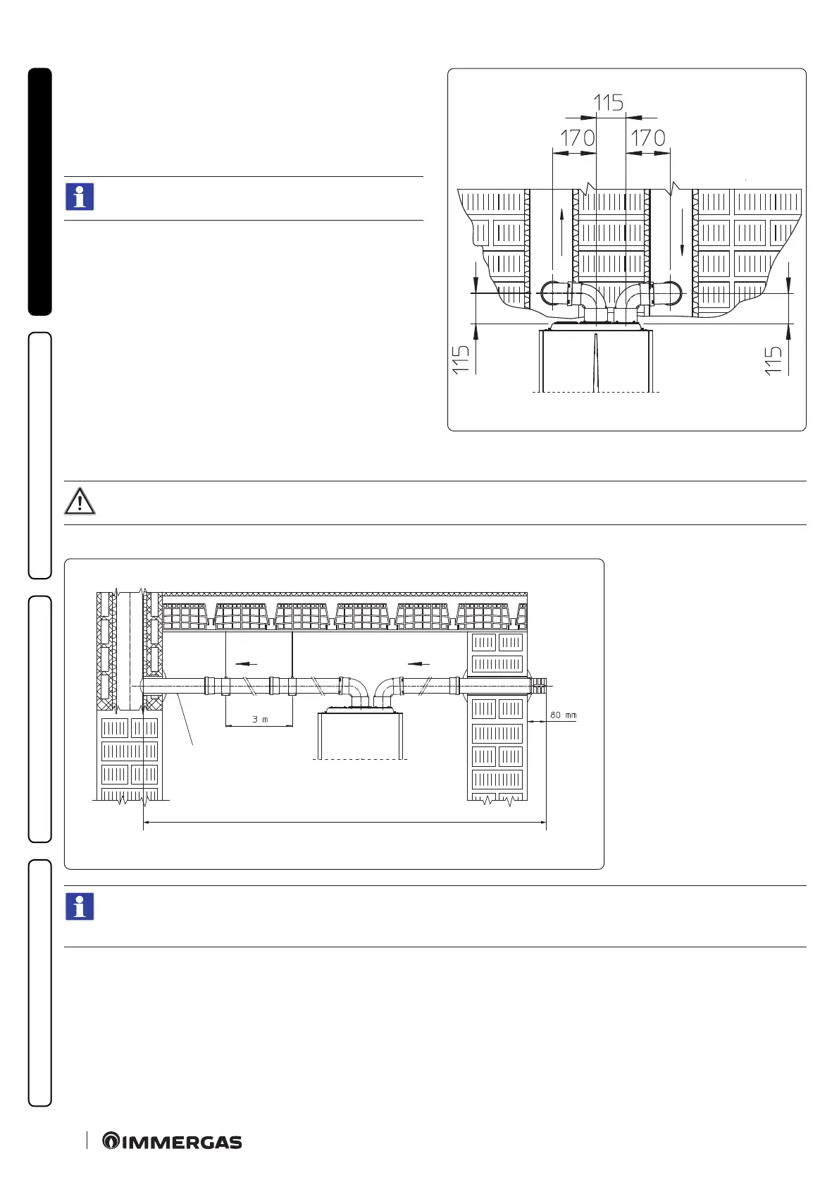 To aid in the removal of possible condensate forming in the exhaust pipe, tilt the pipes towards the appliance with a minimum