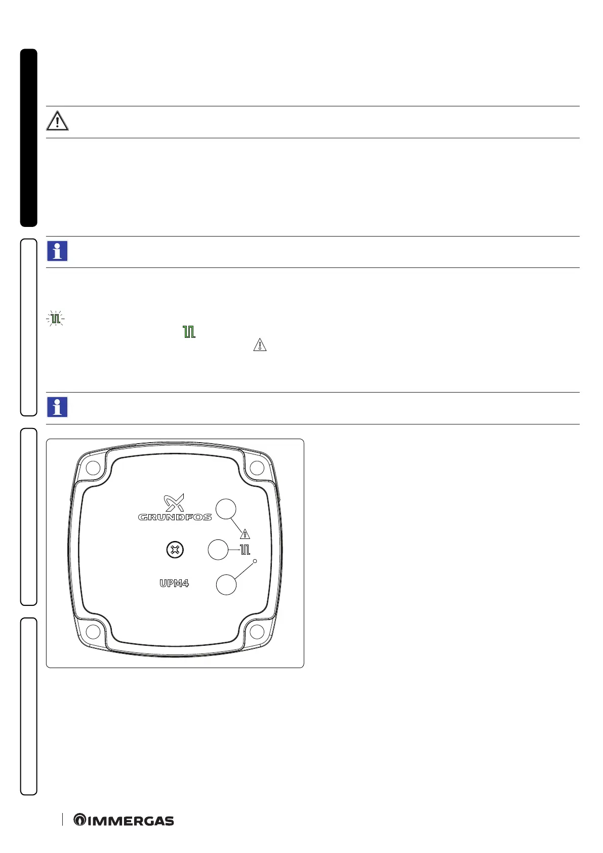 With the pump powered and the pwm control signal connected and operating (pump ON or in stand-by), the symbol 2 ashes green (