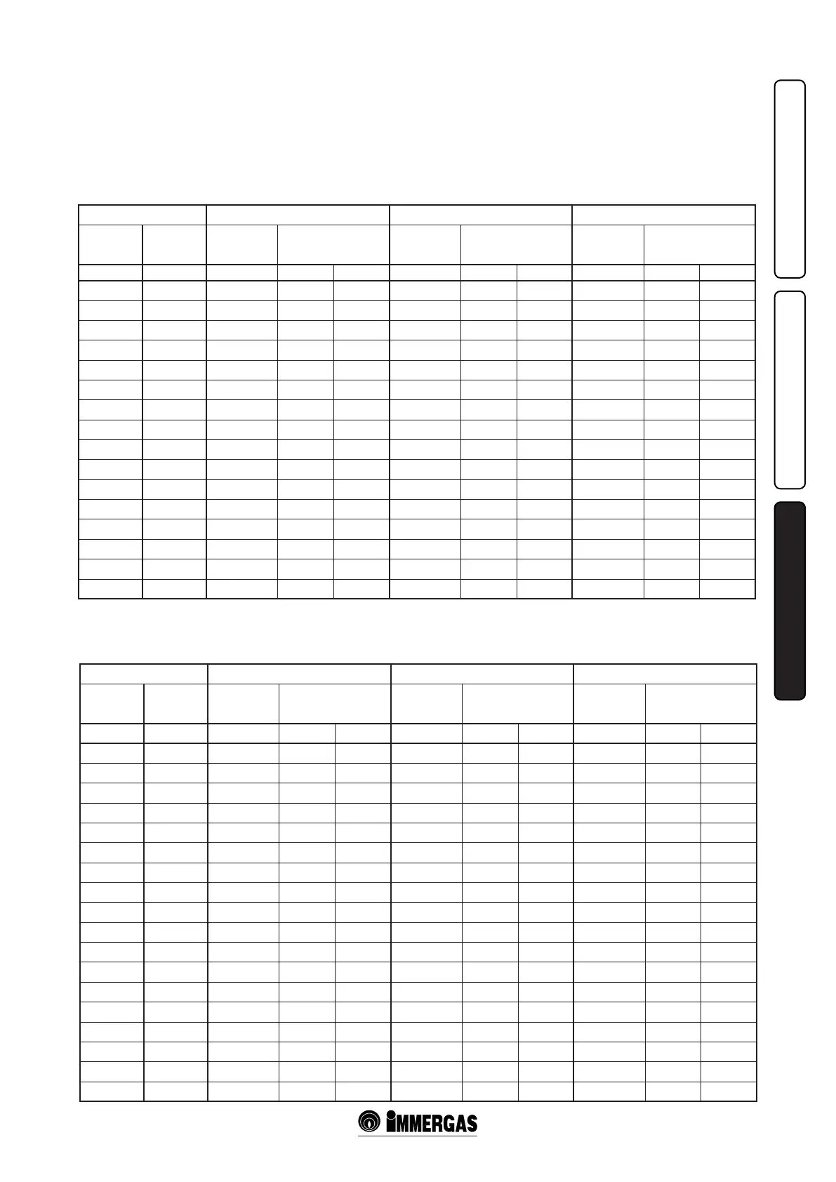 pressure values refer to use of gas at 15°C.