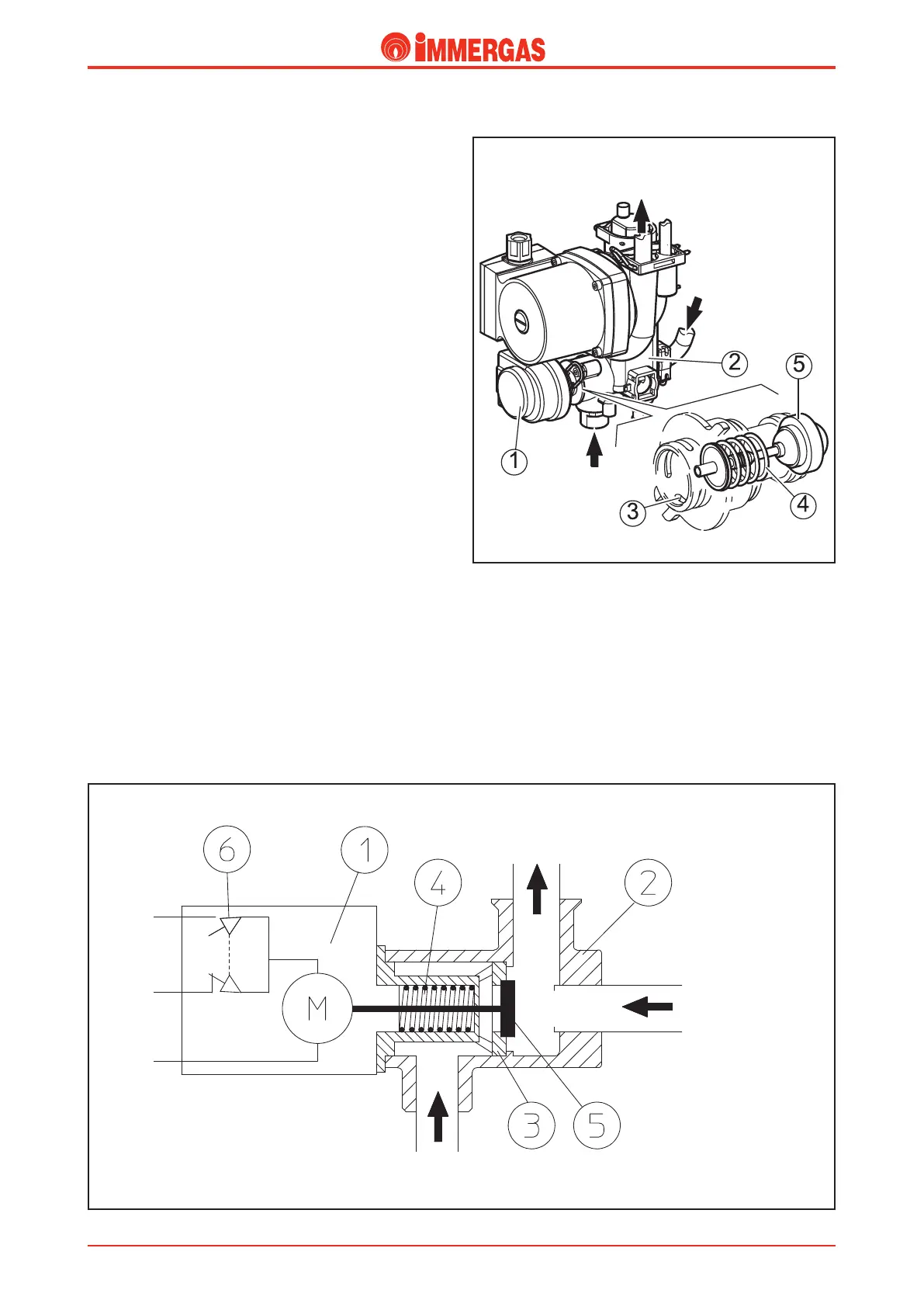 compresses (central heating position) or releases (DHW position)
