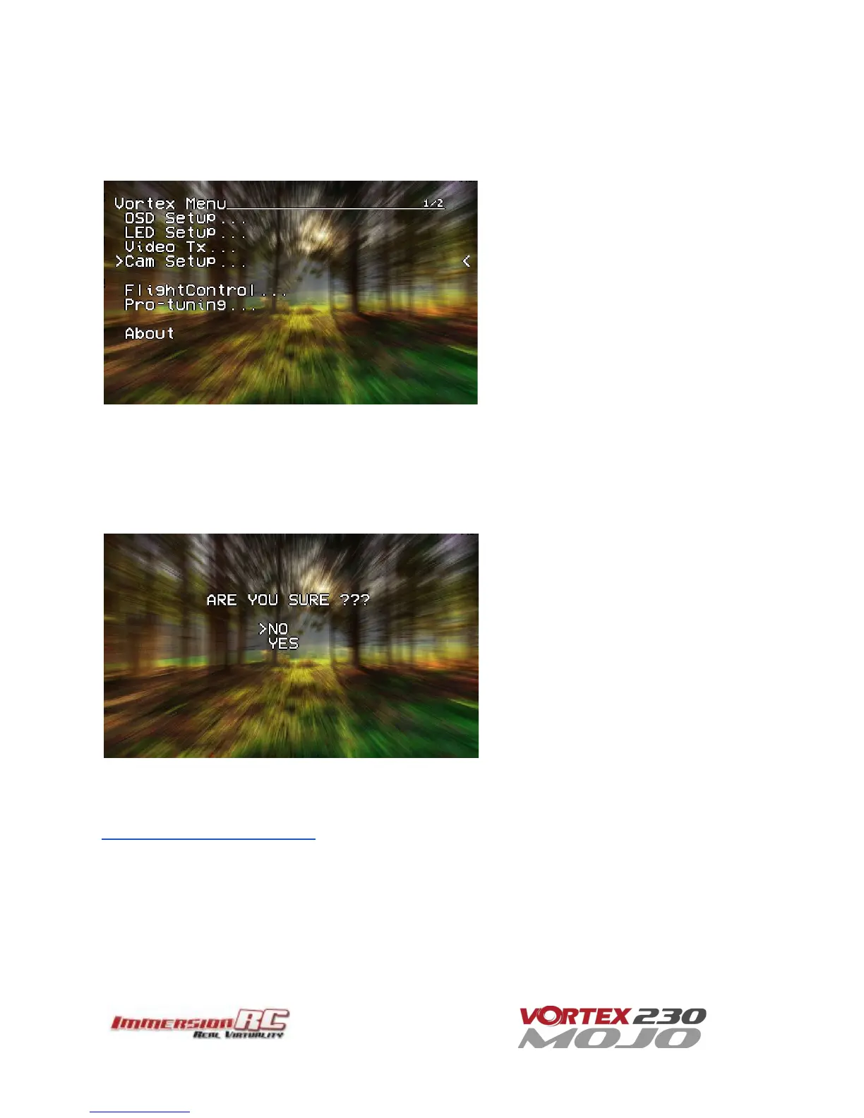 For Mode 2 users, the right-stick becomes the OSD setup joystick (up/down/left/right), and the Vortex OSD