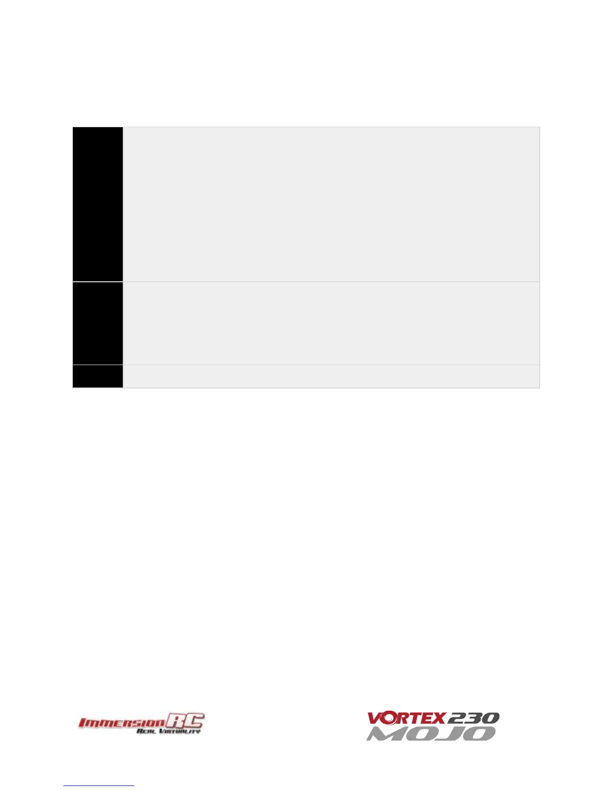 Three flight modes are configured by the Vortex Wizard, and are mapped by default to channel 5 of the R/C Tx.