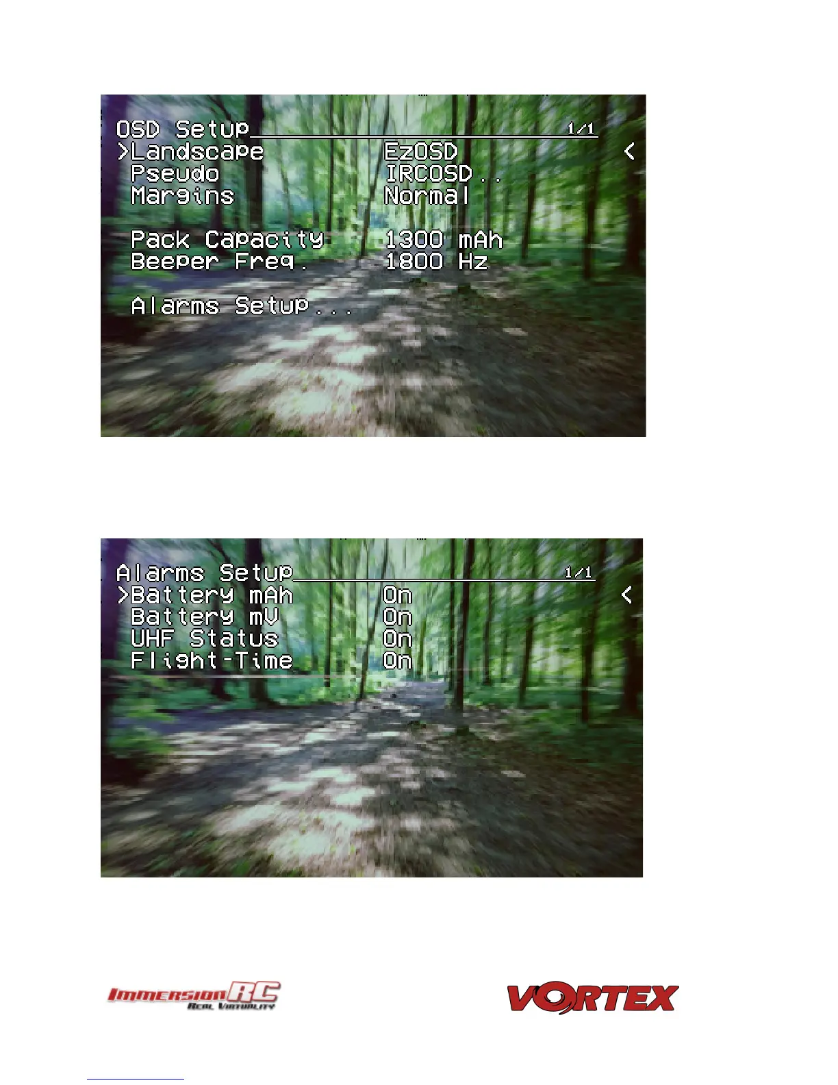 ImmersionRC Vortex - OSD Setup Parameters; Alarms Setup Menu