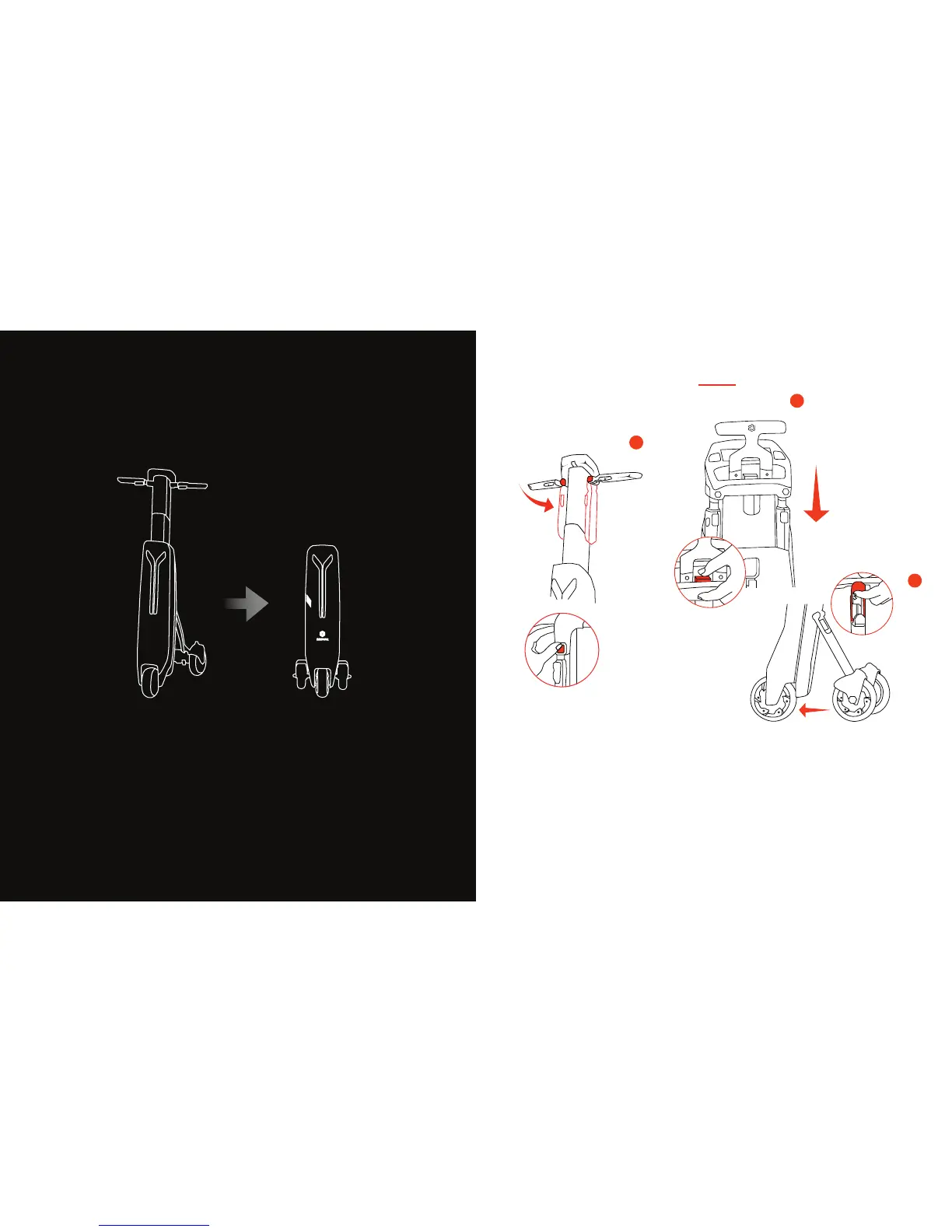 3) Lift the trigger latch to release rear wheels and fold/lock the